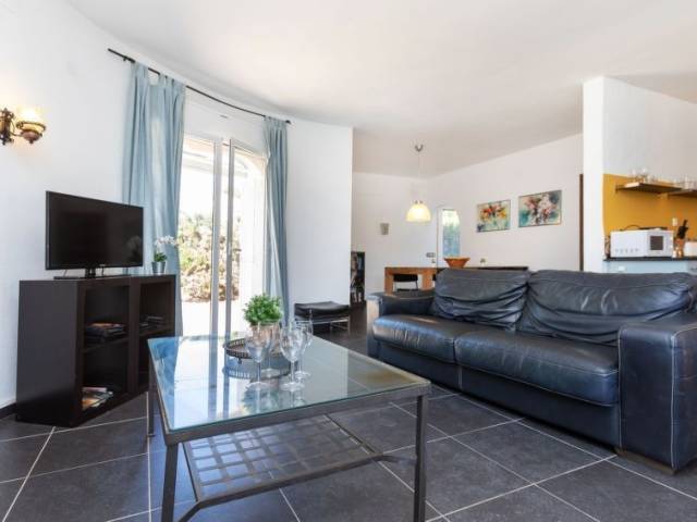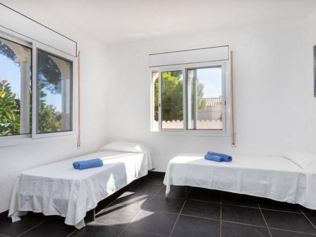 "Casa Sol", villa 7 estancias 220 m2 en 2 plantas. Espacioso, con mobiliario confortable y bonito: salón-comedor con mesa de comedor y TV satélite (pantalla plana). Salida a la terraza-jardín. 1 dorm. con 2 camas (90 cm), ventilador. Salida a la terraza-jardín. 1 dorm. con 1 cama de matrimonio (135 cm), ventilador. Cocina abierta (4 fogones, horno, lavavajillas, tostadora, hervidor de agua eléctrico, microondas, cafetera eléctrica). Baño/WC, doble lavabo. Ningún tipo de calefacción. Planta superior: (escalera exterior) salón-dormitorio con 1 cama de matrimonio (135 cm), mesa de comedor. Salida al balcón. 1 dorm. con 1 cama de matrimonio (135 cm), ducha/WC y ventilador. 1 dorm. con 2 camas (90 cm), ducha/WC y ventilador. Rincón-cocina (4 fogones). 2 terrazas, jardín. Muebles de terraza, barbacoa. Vista al mar. El alojamiento dispone de: lavadora, plancha, secador de pelo. Internet (Wifi, gratis). Plaza de aparcamiento junto a la casa. A tener en cuenta: adecuado para familias. 2 mascotas / perros. TV solamente FR, DE, NL. HUTTE002980