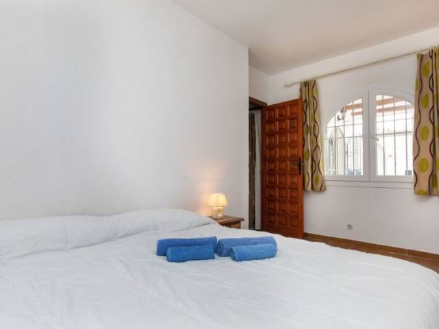 "Villa Torreon", villa 6 estancias 125 m2 en 2 plantas. Con mobiliario confortable y agradable: salón-comedor con mesa de comedor, TV satélite y ventilador. 2 dorm., cada habitación con 1 cama de matrimonio (135 cm). 1 dorm. con 2 camas (90 cm). 1 dorm. con 1 x 2 literas (90 cm). Cocina (horno, lavavajillas, 4 placas de vitrocerámica, tostadora, hervidor de agua eléctrico, microondas, cafetera eléctrica). Ducha/WC. Ningún tipo de calefacción. Planta superior: 1 dorm. con 1 cama de matrimonio (200 cm), ducha/WC. Salida a la terraza. Terraza-jardín. Muebles de terraza, barbacoa. El alojamiento dispone de: lavadora, plancha, secador de pelo. Internet (Wifi, gratis). Plaza de aparcamiento junto a la casa. A tener en cuenta: TV solamente BE, CH. HUTTE001767