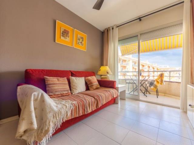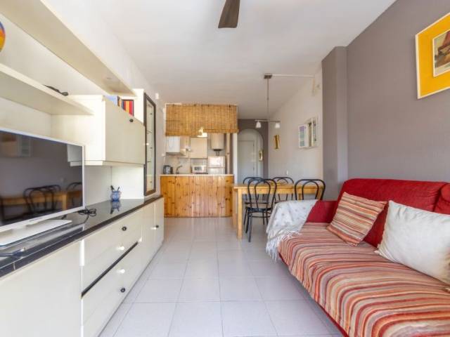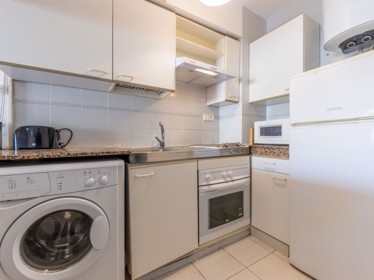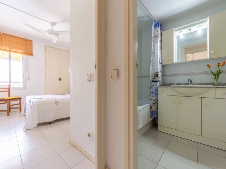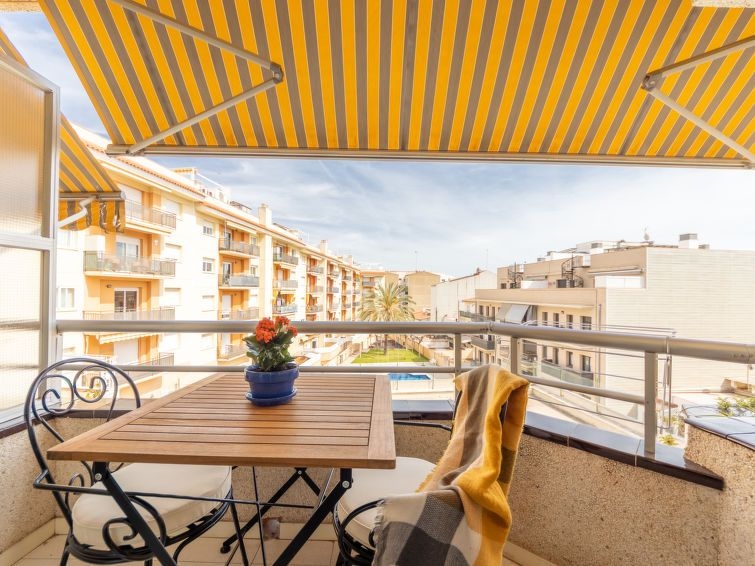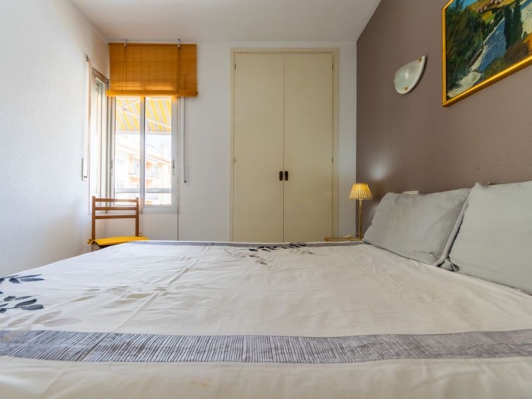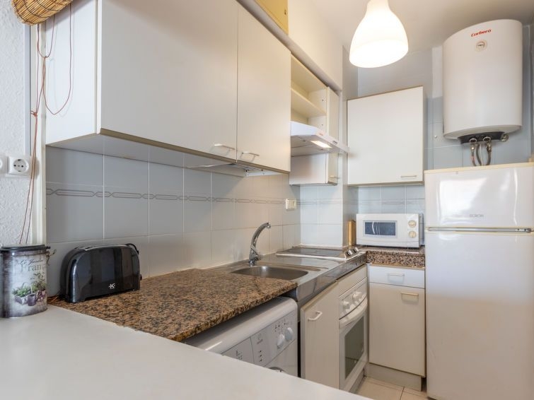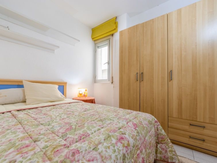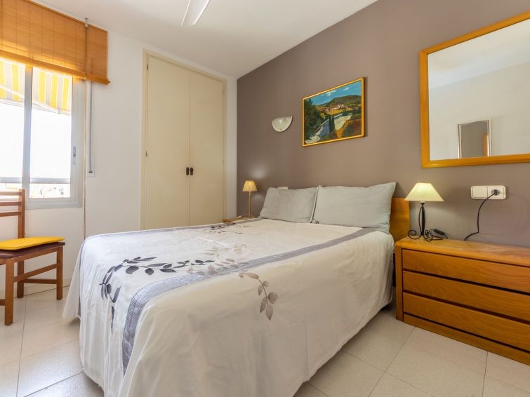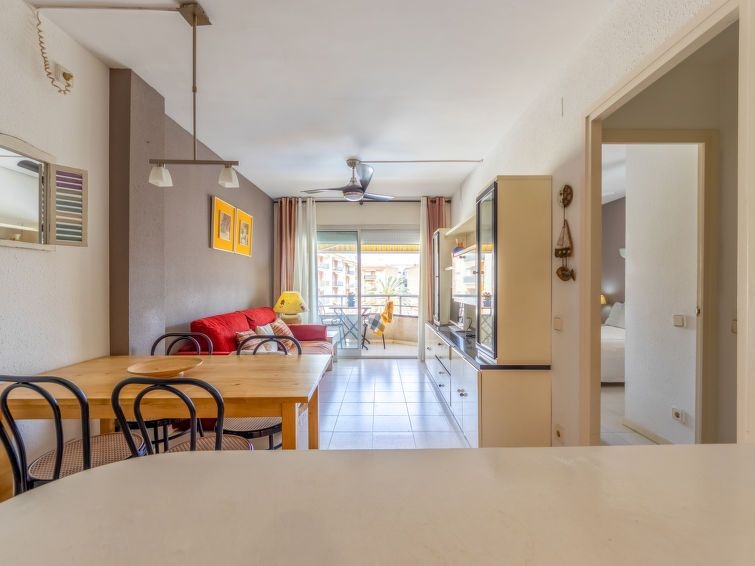 "Filador", apartamento de 3 estancias 48 m2 en el 3° piso. Vivienda adecuada para 3 adultos. Con mobiliario sencillo y funcional: salón-comedor con TV digital y ventilador. Salida al balcón cubierto. 1 dorm. con 1 cama de matrimonio (135 cm, 190 cm de longitud), ventilador. 1 dorm. con 1 cama (105 cm, 190 cm de longitud). Cocina abierta (horno, 2 placas de vitrocerámica, tostadora, hervidor de agua eléctrico, microondas, cafetera eléctrica). Ducha/WC. Ningún tipo de calefacción. Balcón. Muebles de terraza. Vista a la piscina. El alojamiento dispone de: lavadora, plancha, secador de pelo. Internet (Wifi, gratis). A tener en cuenta: adecuado para familias. 1 mascota pequeña / perro. TV solamente ES. HUTT-066108
