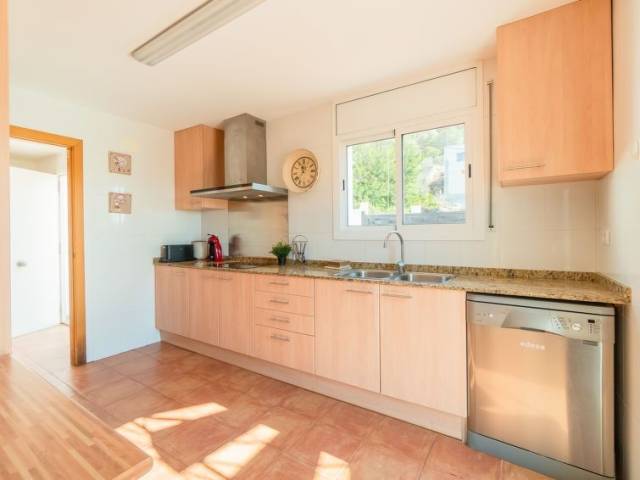 Casa unifamiliar moderna, confortable. Lugar tranquilo area residencial (villas), a 3.6 km del mar, a 3.6 km de la playa. Privado: terreno (vallada), jardín bonito, piscina rectangular (8 x 4 m, 180 cm de profundidad, Disponible por temporada: 15.Jun. - 15.Sep.) con sistema de limpieza por electrolysis de sal. Ducha exterior, porche, barbacoa, posibilidad de aparcamiento en la calle. Supermercado 2.6 km, restaurante, bar 900 m. Atracciones en los alrededores: Barcelona 73 km, Sitges 36 km, Tarragona 26 km, Port Aventura 37 km. A tener en cuenta: coche recomendable. El propietario no acepta grupos de adolescentes/jóvenes. Vecindario muy sensible a ruidos. Se ruega respetar la tranquilidad y normas de buen comportamiento. "Mimi", casa 5 estancias 234 m2 en 2 plantas. Espacioso, con mobiliario confortable y bonito: salón-comedor con mesa de comedor y TV digital. Salida a la terraza. 1 dorm. con 1 cama de matrimonio (150 cm, 190 cm de longitud), ducha/WC. 2 dorm., cada habitación con 2 camas (90 cm, 190 cm de longitud). Cocina (horno, lavavajillas, 3 placas de vitrocerámica, tostadora, microondas, cafetera eléctrica). Salida a la terraza. Baño/WC. Ningún tipo de calefacción. En planta inferior: salón-dormitorio con 1 sofá-cama doble (150 cm, 190 cm de longitud). 1 dorm. con 1 cama de matrimonio (135 cm, 190 cm de longitud). Cocina (horno, 4 placas de vitrocerámica, microondas). Ducha/WC. Terraza-jardín grande. Muebles de terraza, barbacoa, tumbonas. Vista lejana al mar. El alojamiento dispone de: lavadora, plancha, secador de pelo. El aire acondicionado no esta disponible. HUTT054326