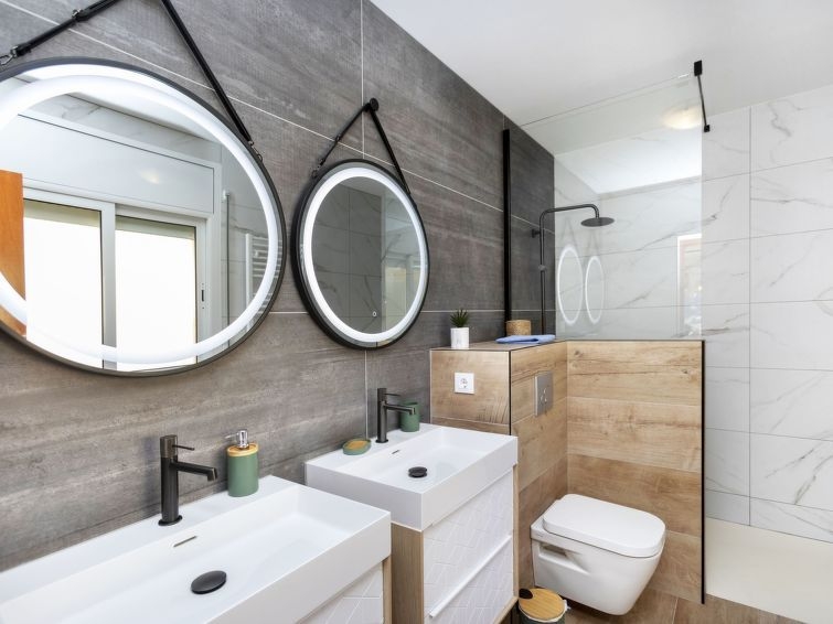 Casa de dos viviendas "Floradise", muy moderna, agradable, confortable de 2 plantas. En el barrio de Serrabrava, a 5 km del centro de Lloret de Mar, lugar soleado area residencial (villas), a 3 km del mar, a 3 km de la playa. Privado: piscina rectangular (4 x 8 m, 120 - 180 cm de profundidad, Disponible por temporada: 01.Abr. y 30.Oct.). Aparcamiento (número limitado), posibilidad de aparcamiento. Tienda 4 km, supermercado, restaurante, bar 200 m, playa de arena "Cala de Canyelles" 3 km. Puerto deportivo 3 km, tenis 3 km. Atracciones en los alrededores: Water World lloret de mar 9 km, MarinLand Blanes 17 km, Pueblo medieval de Tossa de mar 11 km. A tener en cuenta: coche recomendable. Adecuado para familias. El propietario no acepta grupos. El propietario no acepta grupos de adolescentes/jóvenes. "Floradise", villa 7 estancias 250 m2. Espacioso y luminoso, con mobiliario muy confortable y moderno: salón-comedor con mesa de comedor, TV satélite, TV digital y canales internacionales. Salida a la terraza-jardín, a la piscina. 1 dorm. doble con 1 cama de matrimonio (160 cm, 190 cm de longitud), baño/bidet/WC. 1 dorm. doble con 1 x 2 literas, 1 cama de matrimonio (150 cm, 190 cm de longitud). 1 dorm. doble con 1 cama de matrimonio (150 cm, 190 cm de longitud). Cocina (horno, lavavajillas, 4 Placas de inducción, tostadora, hervidor de agua eléctrico, microondas, congelador, cafetera eléctrica). Ducha/WC. Ningún tipo de calefacción. En planta inferior: salón-comedor con mesa de comedor, TV satélite, TV digital y canales internacionales. Salida a la terraza. 2 dorm. dobles, cada habitación con 1 cama de matrimonio (150 cm, 190 cm de longitud). Cocina abierta (horno, lavavajillas, 4 placas de vitrocerámica, tostadora, hervidor de agua eléctrico, microondas, congelador, cafetera eléctrica). Ducha/WC. Ningún tipo de calefacción. Terraza grande. Muebles de terraza, barbacoa, tumbonas. Vista panorámica al mar. El alojamiento dispone de: lavadora, plancha, trona hasta 2 años, secador de pelo. Internet (Wifi, gratis). A tener en cuenta: TV solamente ES, FR, DE. HUTG019914