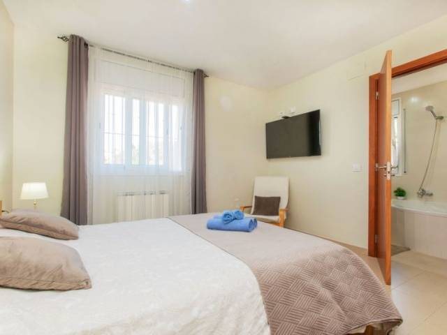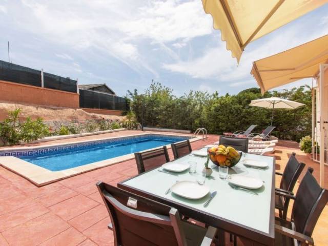 Casa "Emballia", muy moderna, agradable, confortable. En la periferia, a 10 km del centro de lloret de Mar, lugar soleado, a 10 km del mar, a 10 km de la playa. Privado: jardín natural, piscina rectangular (8 x 4 m, 170 - 100 cm de profundidad, Disponible por temporada: 06.Abr. - 18.Oct.). Ducha exterior, terraza-jardín, terraza (200 m2), muebles de jardín. En el inmueble: lavadora. Posibilidad de aparcamiento en la calle. Tienda 10 km, supermercado 10 km, restaurante 10 km, bar 3 km, panadería 3 km. Atracciones en los alrededores: Waterworld 9 km, Marinland Blanes 18 km, Pueblo medieval de Tossa de mar 21 km. A tener en cuenta: coche recomendable. Adecuado para familias. El propietario no acepta grupos. El propietario no acepta grupos de adolescentes/jóvenes. Vecindario muy sensible a ruidos. Se ruega respetar la tranquilidad y normas de buen comportamiento. "Emballia", casa 4 estancias 130 m2. Con mobiliario funcional y agradable: salón-comedor con mesa de comedor, TV satélite, TV digital, canales internacionales y aire acondicionado. Salida a la terraza, a la piscina. 1 dorm. doble con 1 cama (90 cm, 190 cm de longitud), 1 cama de matrimonio (150 cm, 190 cm de longitud), baño/WC. 1 dorm. doble con 2 camas (90 cm, 190 cm de longitud). 1 dorm. doble con 1 cama de matrimonio (160 cm, 190 cm de longitud), baño/WC. Cocina abierta (4 fogones, horno, lavavajillas, microondas, congelador, cafetera eléctrica). Ducha/WC. Ningún tipo de calefacción. Terraza grande. Muebles de terraza, barbacoa, tumbonas. Vista a las montañas y a la localidad. El alojamiento dispone de: trona, cuna hasta 2 años, secador de pelo. Internet (Wifi, gratis). A tener en cuenta: adecuado para familias. TV solamente ES, FR, DE. HUTG020895