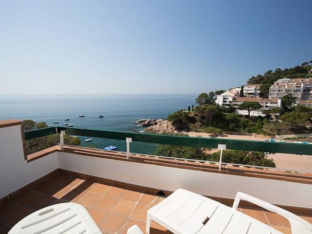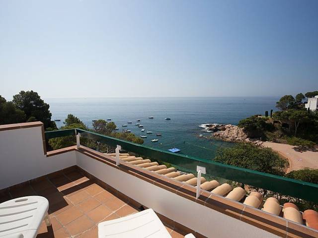 Cala Salionc a 6 km de Tossa de Mar: Casa de apartamentos "Cala Salionc", agradable de 2 plantas. En el barrio de Cala Salionç, a 50 m del mar, en una calle sin salida. Privado: terraza, muebles de jardín. En el complejo: ascensor. Posibilidad de aparcamiento en la calle. Tienda, supermercado, restaurante 100 m, bar 500 m, cala para bañarse 50 m. Campo de golf 15 km, tenis, minigolf 500 m, parque infantil 100 m. Atracciones en los alrededores: Sant Feliu de Guixols 14 km, Platja d'Aro 19 km. Grupos de jóvenes sólo bajo petición.