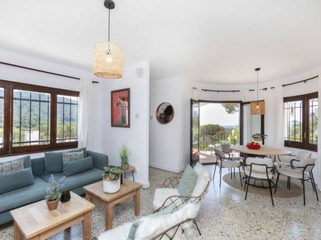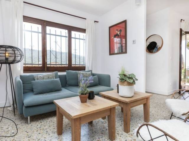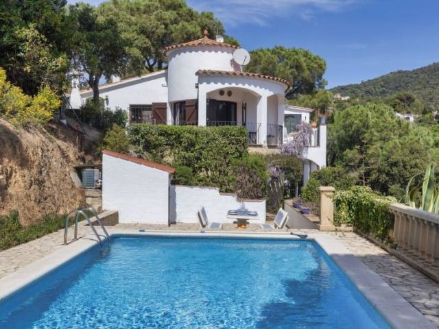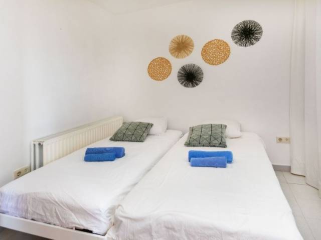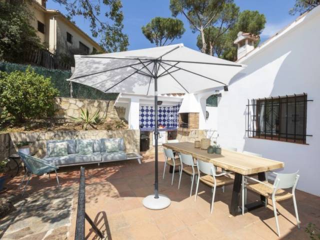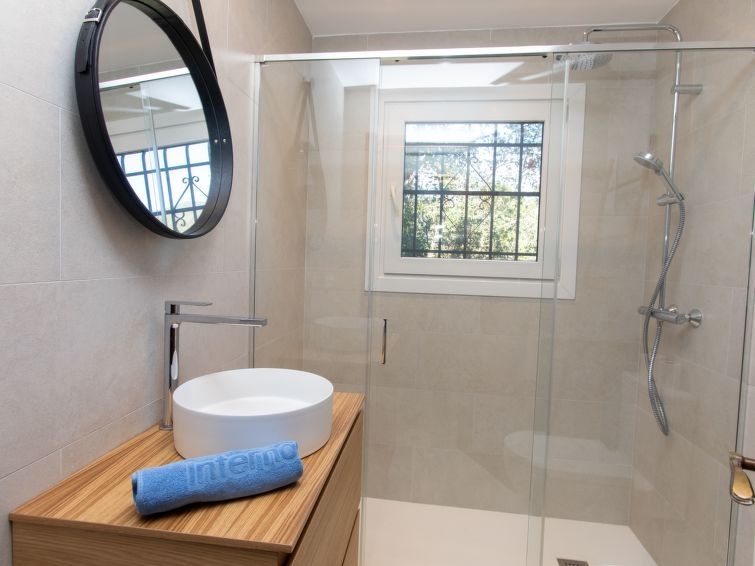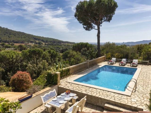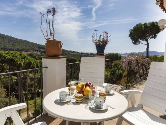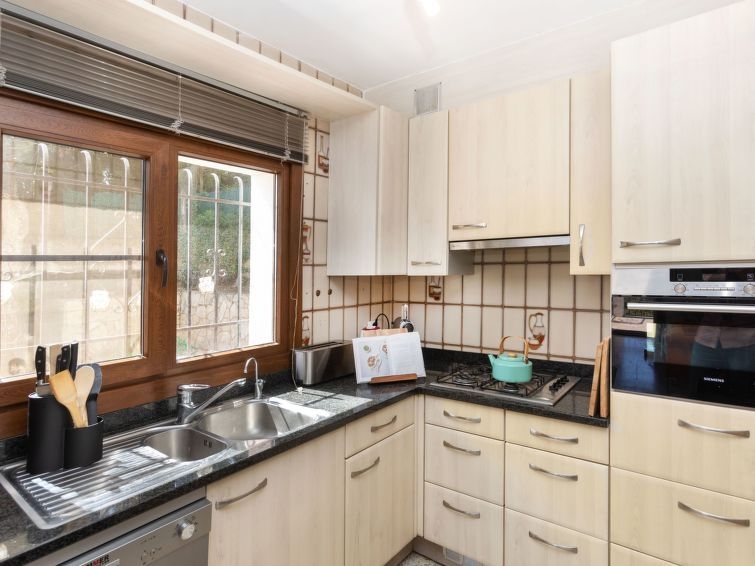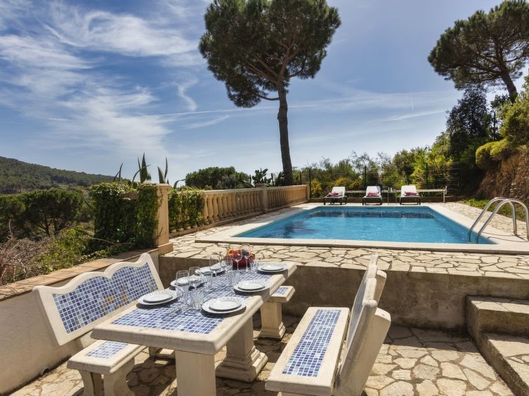 Mas Pere a 2 km de Calonge: Casa de dos viviendas "Hort Vell", sencilla de 2 plantas. En las afueras de la localidad, a 2 km del centro de Calonge, lugar soleado, zona con poco tráfico, a 7 km del mar. Privado: terreno en estado natural, jardín en diferentes niveles (vallado), piscina rectangular (8 x 4 m, 100 - 200 cm de profundidad, Disponible por temporada: 01.Ene. - 31.Dic.) con escalera interior. Tenis de mesa, porche, muebles de jardín. Acceso muy brusco durante 2.8 km hasta la casa. Acceso por escaleras (17 escalones) hasta la casa. Aparcamiento (para 2 coches) en el mismo terreno. Supermercado 3 km, restaurante 2 km, bar 2 km, playa de arena "Sant Antoni de Calonge" 7 km. Puerto deportivo 7 km, campo de golf 7 km, centro ecuestre 13 km. Atracciones en los alrededores: Waterpark Aquadiver 10 km. A tener en cuenta: coche recomendable. El propietario no acepta grupos. El propietario no acepta grupos de adolescentes/jóvenes. "Hort Vell", casa 6 estancias en 2 plantas. Con mobiliario funcional: salón-comedor con TV digital. Salida a la terraza. 2 dorm., cada habitación con 2 camas (90 cm, 190 cm de longitud). 1 dorm. con 2 camas (80 cm, 190 cm de longitud). Cocina (4 fogones, lavavajillas, hervidor de agua eléctrico, microondas, congelador). Baño/WC, ducha/WC. Aire acondicionado. Ningún tipo de calefacción. En planta inferior: (escalera exterior) 1 dorm., abierto con 2 camas (90 cm, 190 cm de longitud). 1 dorm. con 2 camas (90 cm, 190 cm de longitud). Cocina abierta). Ducha/WC. Aire acondicionado. Suelo de piedra natural. Terraza grande. Muebles de terraza, muebles de balcón, barbacoa, tumbonas (5), porche. Vista al mar, a las montañas, al paisaje y a la localidad. El alojamiento dispone de: lavadora, plancha, trona, cuna, secador de pelo. Internet (Wifi). Plaza de aparcamiento junto a la casa. HUTG-058046