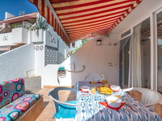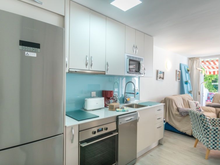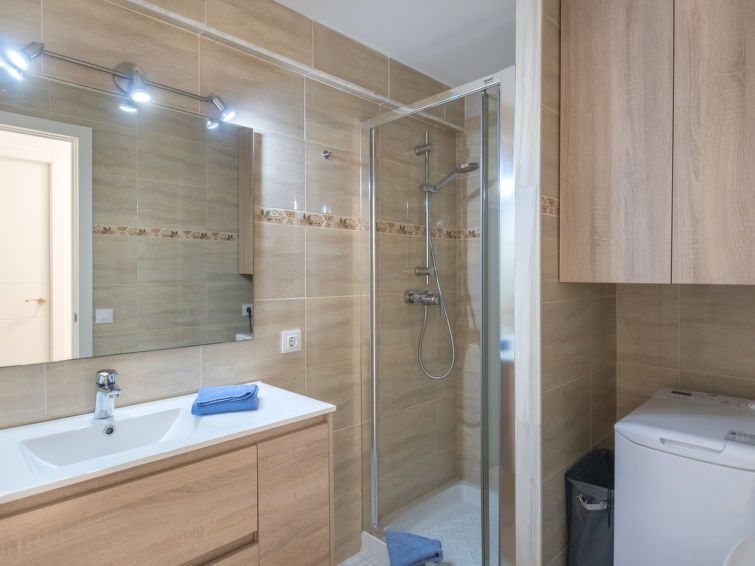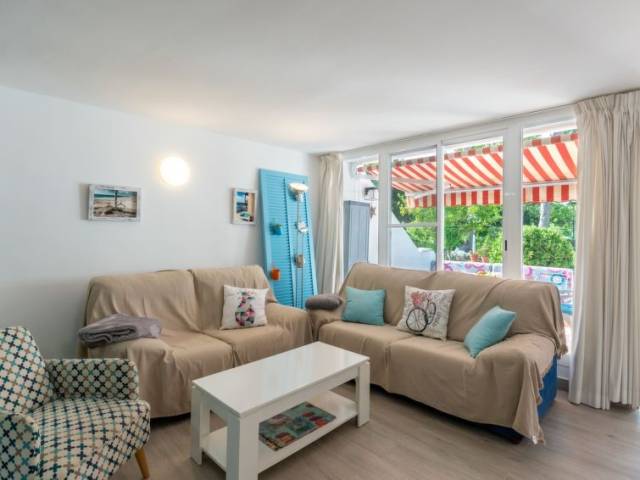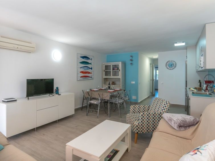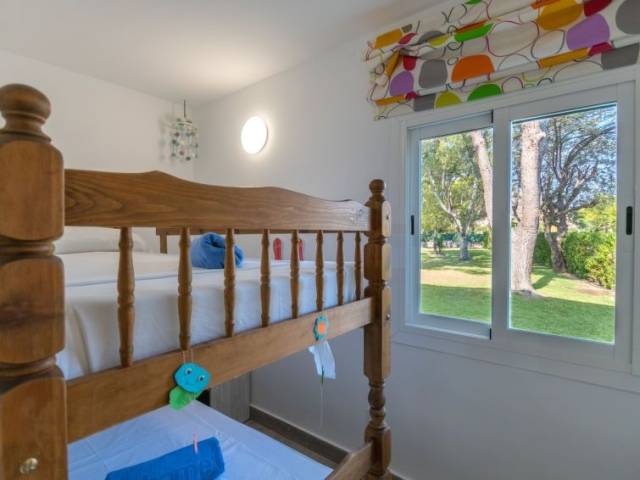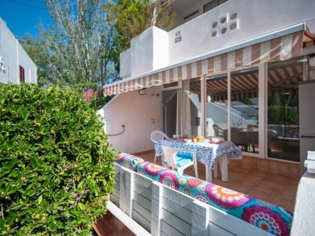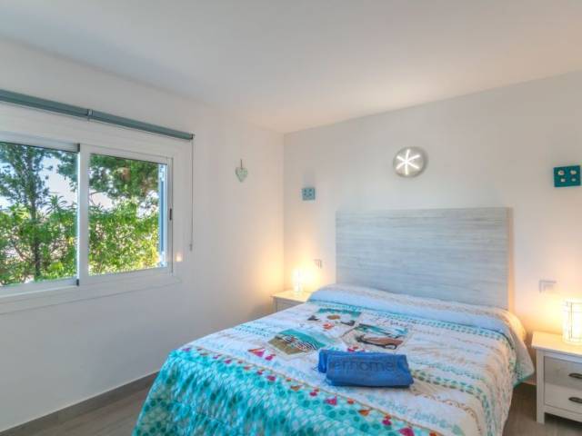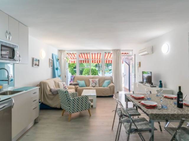 "Can Jane", apartamento de 3 estancias 63 m2, en planta baja. Vivienda adecuada para 2 adultos + 2 niños. Luminoso, completamente, con mobiliario muy funcional y moderno: salón-comedor abierto grande con TV satélite (pantalla plana), aire acondicionado y bomba de calor, caliente. Salida a la terraza-jardín. 1 dorm. doble, grande con ventanal con 1 cama de matrimonio (150 cm, 190 cm de longitud), aire acondicionado y bomba de calor, caliente. 1 dorm. con ventanal con 1 x 2 literas (90 cm, 190 cm de longitud). Cocina abierta (horno, lavavajillas, 3 placas de vitrocerámica, tostadora, hervidor de agua eléctrico, microondas, congelador, cafetera eléctrica) con mesa de comedor, aire acondicionado y bomba de calor, caliente. Ducha/WC. Terraza. Muebles de terraza, rincón para sentarse, trastero. Vista al jardín y a la localidad. El alojamiento dispone de: lavadora, plancha, trona, cuna hasta 2 años, secador de pelo. Internet (Wifi, gratis). A tener en cuenta: adecuado para familias. Extintores. 47092021
