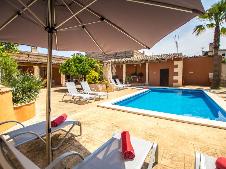 María de la Salut: Casa "Son Verd", muy amplia, rústica de 2 plantas. En la localidad, a 200 m del centro, lugar soleado, excelente situación: muy céntrica pero tranquila, a 15 km de la playa. Privado: jardín con árboles, piscina rectangular (9 x 5 m, Disponible por temporada: 01.Ene. - 31.Dic.). Ducha/WC en zona de piscina, ducha exterior, terraza-jardín, cenador, porche, muebles de jardín, barbacoa. En el inmueble: acceso a internet, Wifi, sala para guardar bicicleta, aire acondicionado, lavadora. Posibilidad de aparcamiento en la calle. Supermercado 500 m, restaurante 220 m, bar 200 m, panadería 320 m, a 3 minutos del centro andando, parada de autobús 400 m, playa de arena 15 km, playa rocosa 17 km. Puerto deportivo 16 km, campo de golf (18 hoyos) 28 km, polideportivo 700 m. Atracciones en los alrededores: Rancho Grande 19 km, Parque Natural de s'Albufera 16 km. A tener en cuenta: adecuado para familias, adecuado para la tercera edad. Vivienda adecuada para 10 adultos grupos de jóvenes sólo bajo petición. Carga y descarga de equipaje posible en la casa de vacaciones. Aeropuerto 43 km de la casa.