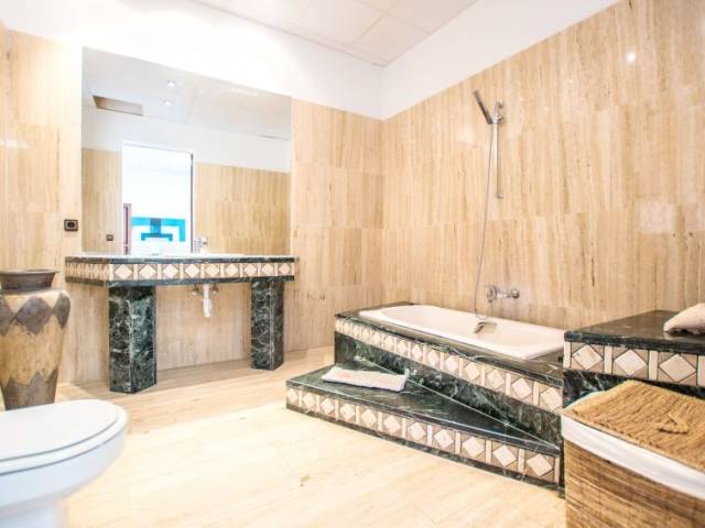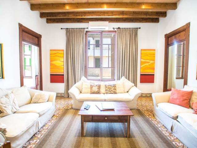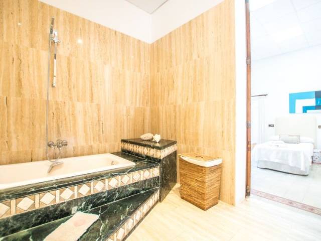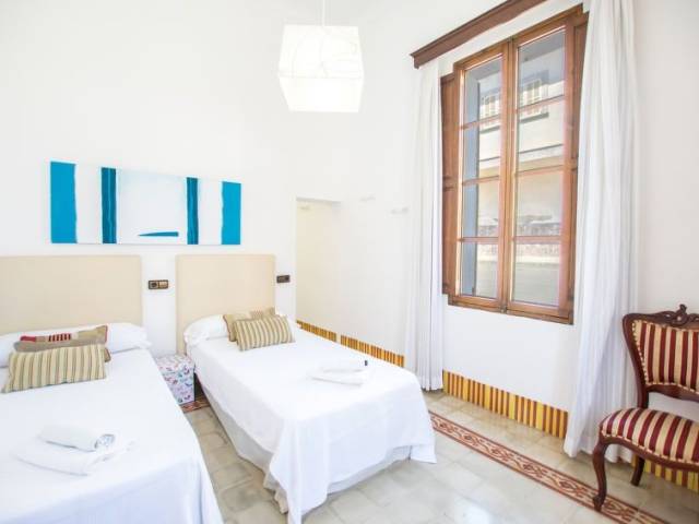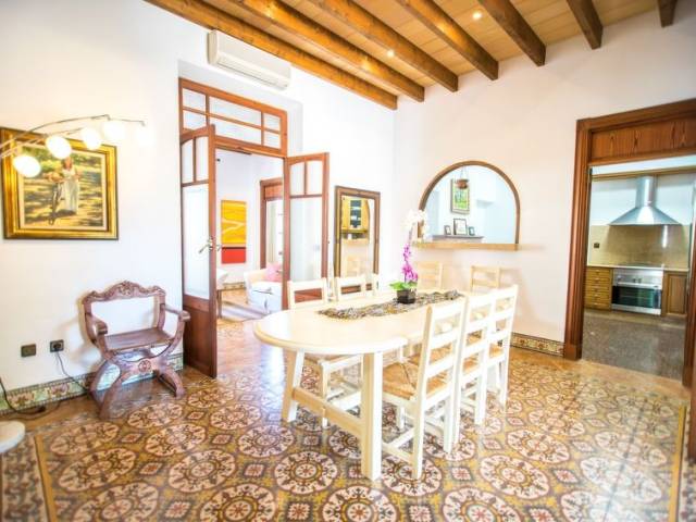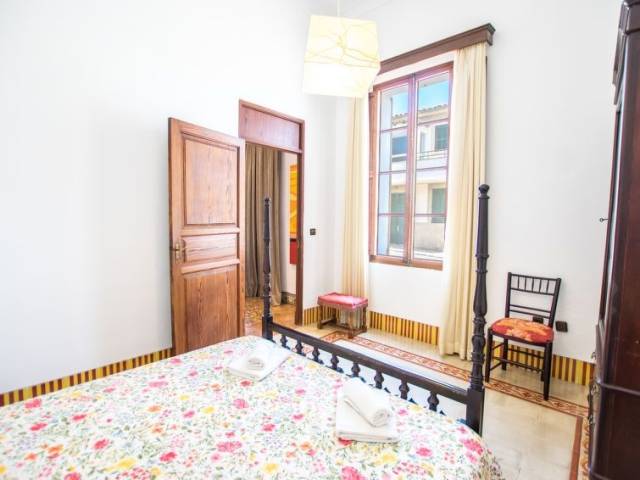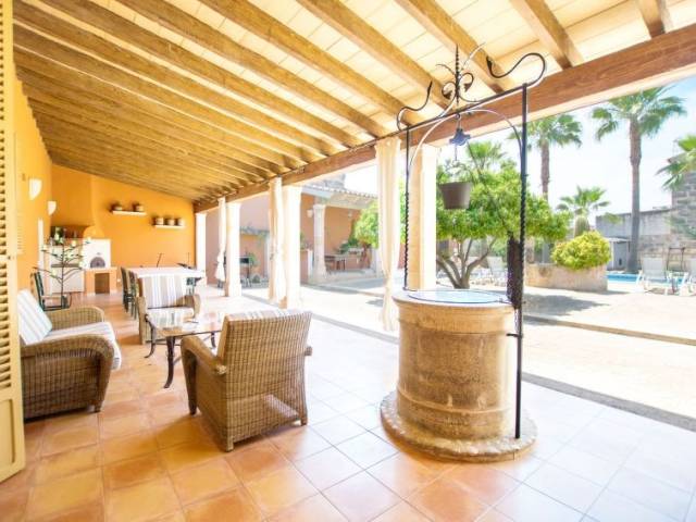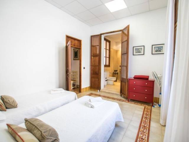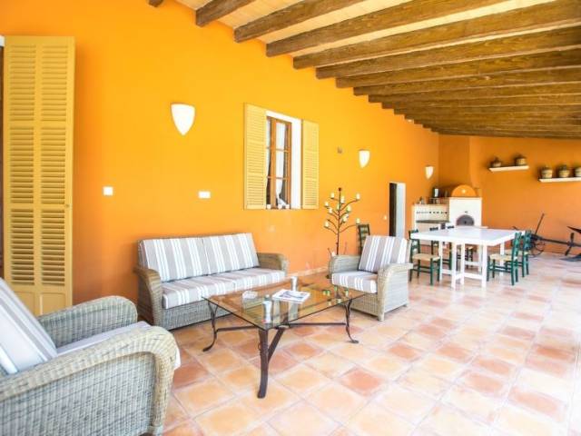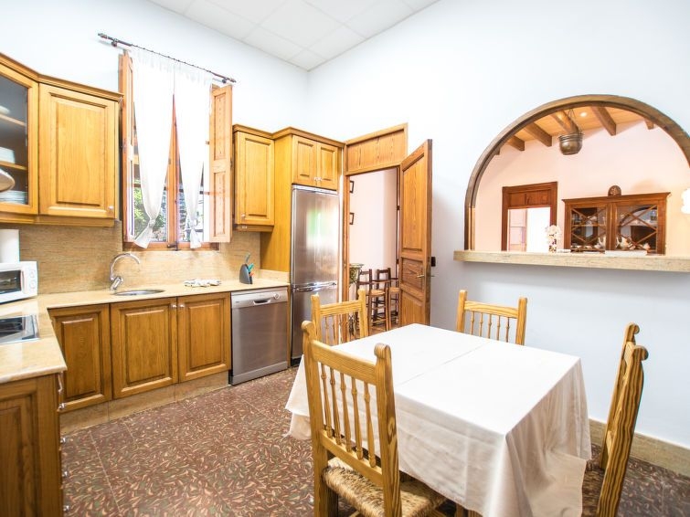 "Son Verd", casa 7 estancias 329 m2 en 2 plantas. Vivienda adecuada para 10 adultos. Espacioso, parcialmente reformada, con mobiliario muy bonito y agradable: salón con TV satélite, aire acondicionado y bomba de calor, caliente. Comedor grande con mesa de comedor, aire acondicionado y bomba de calor, caliente. Salida a la terraza-jardín, a la piscina. 1 dorm. doble, grande con ventanal (150 cm). Salida a la terraza-jardín, a la piscina. Habitación de paso grande con ventanal con 2 camas (90 cm), baño/WC y con bañera esquinera. 1 dorm. doble, abierto grande con ventanal con 2 camas (90 cm). 1 dorm. doble con ventanal con 1 cama de matrimonio (150 cm). Cocina (horno, lavavajillas, 3 placas de vitrocerámica, tostadora, hervidor de agua eléctrico, microondas, congelador, cafetera eléctrica) con barra americana, mesa de comedor. Planta superior: 1 dorm. doble, grande con 2 camas (90 cm), baño/ducha/WC, aire acondicionado y bomba de calor, caliente. Salida a la terraza. Mobiliario confortable de estilo rural. Terraza-jardín grande. Muebles de terraza, barbacoa, tumbonas, porche. Vista al jardín y a la localidad. El alojamiento dispone de: lavadora, plancha, trona, cuna, secador de pelo. Internet (Wifi, gratis). Adecuado para familias. A dos de los dormitorios de la casa se accede por el porche/terraza. ETV5877