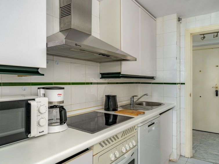 "Dama de noche", apartamento de 2 estancias 63 m2 en el 2° piso. Salón-comedor con 1 sofá-cama y TV digital. Salida a la terraza. 1 dorm. con 1 cama de matrimonio (160 cm, 200 cm de longitud). Cocina (lavavajillas, 4 placas de vitrocerámica, tostadora, hervidor de agua eléctrico, microondas, congelador, cafetera eléctrica). Baño/bidet/WC. Aire acondicionado, aire caliente. Terraza cubierta. Muebles de terraza. El alojamiento dispone de: lavadora, plancha, trona, cuna, secador de pelo. Internet (Wifi, gratis). Garaje n. 44. VFT/MA/63941