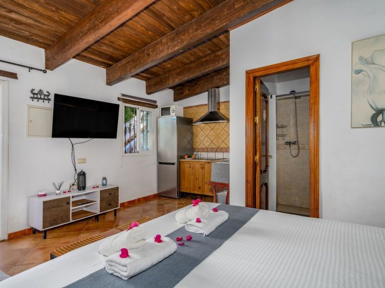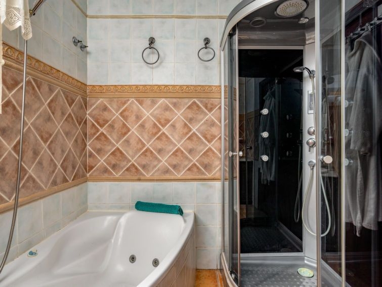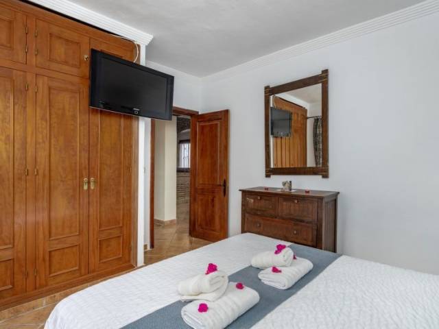 "Finca Villaverde", casa rural 9 estancias 290 m2. Salón 100 m2 con chimenea, aire acondicionado y bomba de calor, caliente. 1 dorm. 10 m2 con 1 cama de matrimonio (135 cm, 190 cm de longitud), TV digital. 1 dorm. 10 m2 con 1 cama de matrimonio (135 cm, 190 cm de longitud), TV digital. 12 m2, 1 dorm. con 1 cama de matrimonio (180 cm, 200 cm de longitud), TV digital. 1 dorm. 14 m2 con 1 x 2 literas (90 cm, 190 cm de longitud). Grande cocina 50 m2 (4 placas de vitrocerámica, tostadora, hervidor de agua eléctrico, microondas, congelador, cafetera eléctrica) con mesa de comedor, TV digital y ventilador. Baño/ducha/WC. En planta inferior: 40 m2, Estudio con 1 cama de matrimonio (200 cm, 200 cm de longitud), TV digital, aire acondicionado y bomba de calor, caliente. Cocina (3 placas de vitrocerámica, microondas, congelador) con aire acondicionado y bomba de calor, caliente. Ducha/WC. Planta superior: (escalera exterior) salón-comedor 100 m2 con chimenea, TV digital, aire acondicionado y bomba de calor, caliente. 1 dorm. con 1 cama de matrimonio (180 cm, 200 cm de longitud), TV digital, aire acondicionado y bomba de calor, caliente. 1 dorm. con 1 cama de matrimonio (150 cm, 200 cm de longitud), TV digital, aire acondicionado y bomba de calor, caliente. Cocina (microondas, congelador, cafetera eléctrica) con mesa de comedor. Baño/ducha/WC, ducha hidromasaje, bañera de hidromasaje. Terraza grande 50 m2, cenador. Muebles de terraza, barbacoa. Vista muy bonita al mar, a las montañas, a la piscina y al jardín. El alojamiento dispone de: lavadora, plancha, trona, cuna hasta 3 años, secador de pelo. Internet (Wifi, gratis). Plaza de aparcamiento (4 Coches). Adecuado para familias. Permitido máximo 3 mascotas / perros. La piscina descrita es de uso privado. CTC2023018448