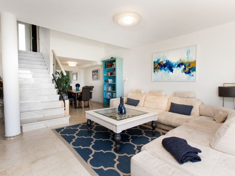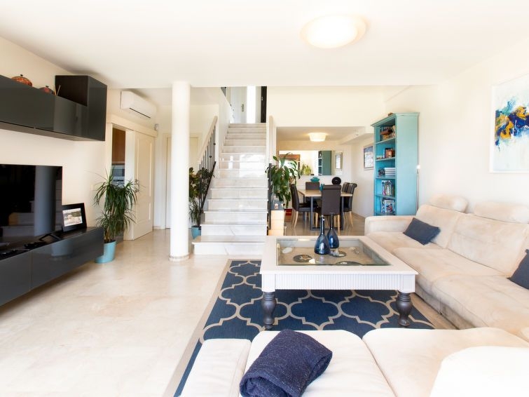 "Victoria", casa pareada 4 estancias 180 m2, orientación sur. Vivienda adecuada para 4 adultos + 3 niños. Espacioso, con mobiliario confortable: salón-comedor con TV digital, aire acondicionado y calentador (200 litros). Salida a la terraza-jardín, orientación sur. 1 dorm. con 1 cama de matrimonio (1 x 200 cm, 200 cm de longitud), baño/WC y aire acondicionado. 1 dorm. con 1 cama de matrimonio (1 x 150 cm, 190 cm de longitud), aire acondicionado. 1 dorm. con 3 camas (90 cm, 190 cm de longitud), aire acondicionado. Cocina (horno, lavavajillas, 3 Placas de inducción, tostadora, hervidor de agua eléctrico, microondas, congelador, cafetera eléctrica). Baño/WC, WC separado. Terraza-jardín 100 m2. Muebles de terraza, barbacoa. Vista muy bonita al mar y a las montañas. El alojamiento dispone de: lavadora, plancha, secador de pelo. Internet (Wifi, gratis). Plaza de aparcamiento. A tener en cuenta: adecuado para familias. TV solamente ES. VFT/MA/65183