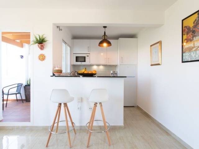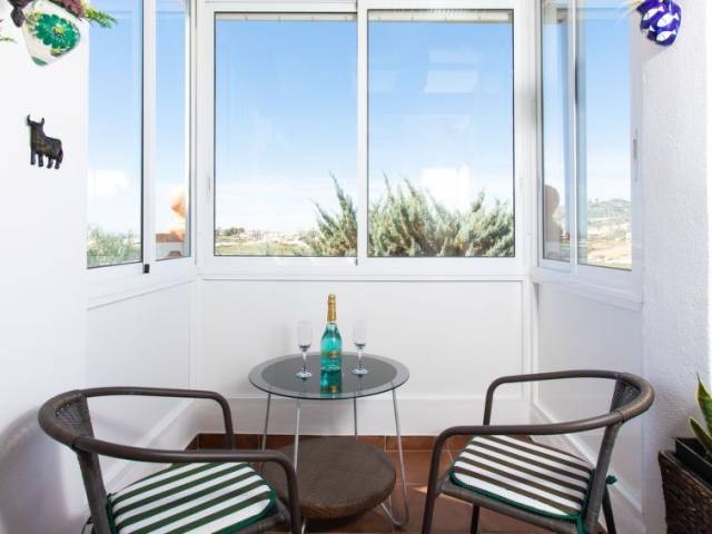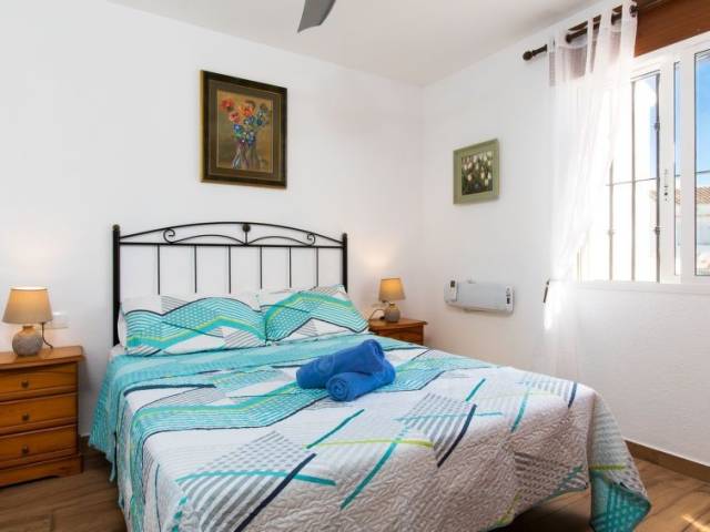 Torrox Park: Casa de apartamentos "Doñana Torrox Park", moderno, confortable. En el barrio de Torrox park, en la localidad, a 800 m del centro de Torrox, lugar tranquilo en un barrio residencial, area residencial (villas), a 1.0 km del mar, a 1.0 km de la playa. Comunitario: jardín natural, bonito jardín para relajarse, piscina (13 x 5 m, 100 - 180 cm de profundidad, Disponible por temporada: 01.Jun. - 30.Sep. horario piscina: 10:00-20:00). WC en zona de piscina, ducha/WC en zona de piscina, tenis. En el inmueble: con TV, Wifi, lavadora. Supermercado, restaurante 150 m, playa de arena "Peñoncillo" 1.0 km. Tenis 200 m. Atracciones en los alrededores: Torrox costa 1.0 km, Nerja 5.1 km, Torrox 800 m, Cuevas de Nerja 9 km. "Doñana Torrox Park", apartamento de 2 estancias 60 m2 en el 1° piso. Luminoso, con mobiliario sencillo y confortable: salón-comedor con 1 sofá-cama (135 cm, 190 cm de longitud), TV digital, aire acondicionado, ventilador y bomba de calor, caliente. Salida a la terraza. 1 dorm. con 1 cama de matrimonio (150 cm, 185 cm de longitud), calefacción eléctrica y ventilador. Cocina abierta (horno, lavavajillas, 3 Placas de inducción, tostadora, hervidor de agua eléctrico, microondas, congelador, cafetera eléctrica). Ducha/WC. Muebles de terraza. Vista panorámica al mar, a las montañas y a la localidad. El alojamiento dispone de: lavadora, secadora, plancha, secador de pelo. Internet (Wifi, gratis). VFT/MA/54171
