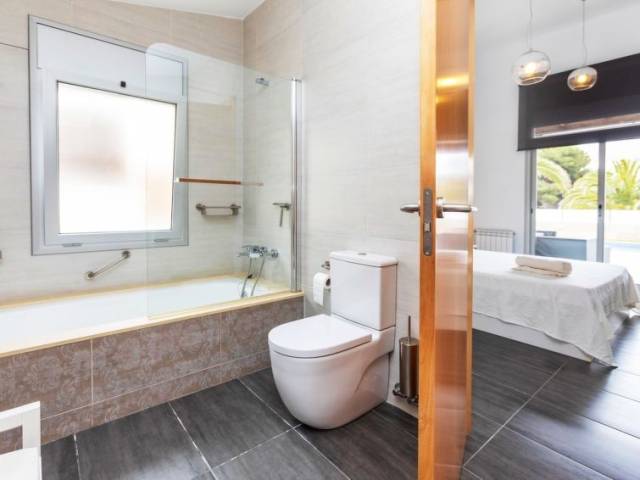 Cala Canyelles a 3 km de Lloret de mar: Villa "Chill", muy amplia, lujosa, reformada en 2015. Por encima Cala Canyelles, lugar tranquilo, soleado area residencial (villas), a 900 m del mar, a 1.5 km de la playa. Privado: bonito jardín para relajarse, piscina rectangular (9 x 3 m, 100 - 180 cm de profundidad, Disponible por temporada: 01.May. - 15.Nov.) con escalera interior. Ducha exterior, terraza (150 m2), muebles de jardín, barbacoa. Aparcamiento/garaje para vehículos pequeños/medios. Tienda 3 km, supermercado 3 km, restaurante, panadería 500 m, parada de autobús "Canyelles" 1 km, playa de arena "Canyelles" 1.5 km, centro de buceo 1 km. Puerto deportivo 1.5 km, campo de golf (18 hoyos) 27 km, tenis 1 km, rutas de senderismo desde la casa 500 m. Atracciones en los alrededores: Waterworld Lloret 4 km, Girona 28 km, Barcelona 79 km, Marinland 12 km, La Roca Village Outlet 57 km. A tener en cuenta: coche recomendable. Adecuado para familias. El propietario no acepta grupos. El propietario no acepta grupos de adolescentes/jóvenes. Carga y descarga de equipaje posible en la casa de vacaciones. Aeropuerto 32 km de la casa.