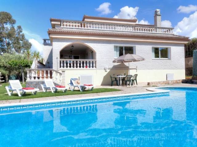 Montgoda a 2 km de Lloret de Mar: Villa "Macedonia", muy bonita, agradable de 2 plantas. En la localidad, a 2 km del centro de Lloret de Mar, lugar soleado, a 500 m del mar, a 2.5 km de la playa. Privado: césped, bonito jardín para relajarse, piscina rectangular (8 x 4 m, Disponible por temporada: 01.Jun. - 17.Oct.) con escalera interior. Ducha exterior, porche, muebles de jardín, barbacoa, mantenimiento de la piscina a través del propietario/jardinero. En el inmueble: lavadora. Aparcamiento junto a la casa, posibilidad de aparcamiento en la calle. Tienda 2 km, supermercado 2 km, restaurante 2 km, panadería 2 km. Puerto deportivo 2 km, campo de golf (18 hoyos) 8 km, minigolf 2 km. Atracciones en los alrededores: Waterworld Lloret de mar 6 km, Pueblo medieval de tossa de mar 9 km, Marinland blanes 12 km. A tener en cuenta: coche recomendable. Residencia con vigilancia. Vecindario muy sensible a ruidos. Se ruega respetar la tranquilidad y normas de buen comportamiento.