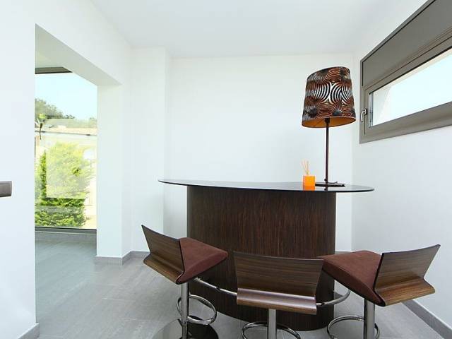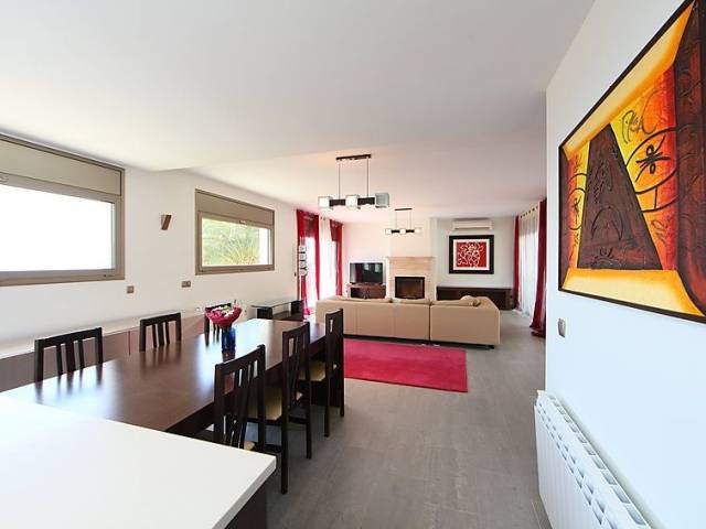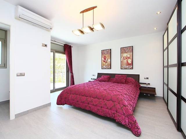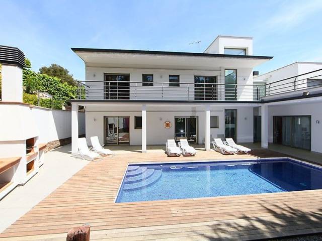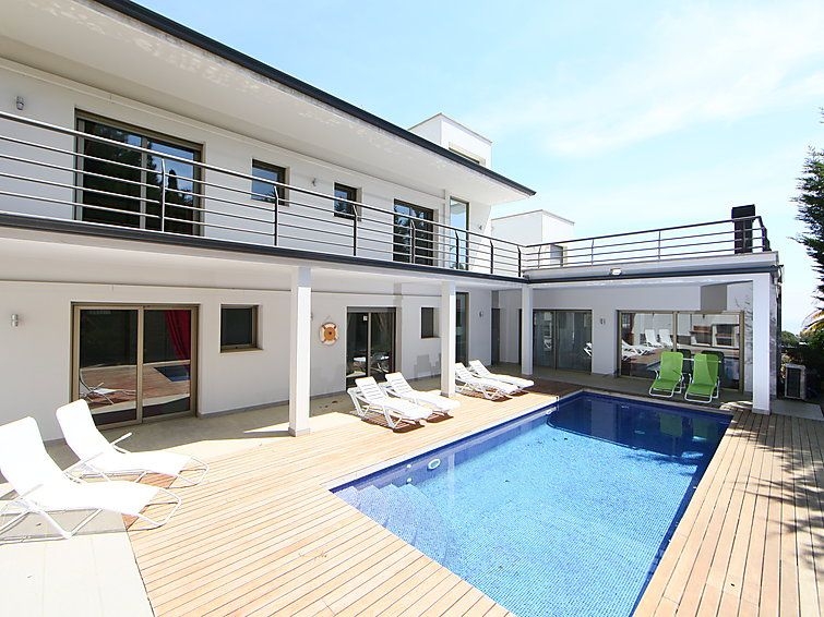 Urb La Montgoda a 3 km de Lloret Centro: Villa "Palmbeach", muy moderna, agradable, confortable de 2 plantas. En la localidad, a 3 km del centro de Lloret de Mar, lugar soleado, a 1.3 km del mar, a 1.3 km de la playa. Privado: bonito jardín para relajarse, piscina rectangular (8 x 3 m, 100 - 170 cm de profundidad, Disponible por temporada: 01.Jun. - 17.Oct.) con escalera interior. Ducha exterior, mantenimiento de la piscina a través del propietario/jardinero. Acceso por escaleras (20 escalones) hasta la casa. Garaje individual, posibilidad de aparcamiento en la calle. Tienda 1.5 km, supermercado 1.5 km, restaurante 1.5 km, panadería 1.5 km. Puerto deportivo 2 km, campo de golf 26 km, minigolf 2 km. Atracciones en los alrededores: Waterworld Lloret de mar 6 km, Pueblo medieval de Tossa de mar 9 km, Marineland Malgrat de Mar 12 km. A tener en cuenta: coche recomendable. Adecuado para familias. El propietario no acepta grupos. El propietario no acepta grupos de adolescentes/jóvenes. Vecindario muy sensible a ruidos. Se ruega respetar la tranquilidad y normas de buen comportamiento. "Palmbeach", villa 6 estancias 520 m2. Espacioso y luminoso, con mobiliario muy confortable y moderno: salón-comedor con chimenea (sólo con función decorativa), TV satélite, TV digital, aire acondicionado y persianas eléctricas. Salida a la terraza-jardín, a la piscina. 2 dorm. dobles, cada habitación con 1 cama de matrimonio (160 cm, 190 cm de longitud). Salida a la terraza-jardín, a la piscina. Grande cocina abierta (horno, lavavajillas, 4 placas de vitrocerámica, tostadora, hervidor de agua eléctrico, microondas, congelador, cafetera eléctrica, isla de cocina) con mesa de comedor. Baño/bidet/WC, WC separado. Calefacción eléctrica, aire acondicionado. Planta superior: 1 dorm. con 1 cama de matrimonio (160 cm, 190 cm de longitud). Salida a la terraza. 1 dorm. doble con 1 cama de matrimonio (190 cm, 200 cm de longitud). Salida a la terraza. Ducha/bidet/WC. Terraza-jardín. Muebles de terraza, barbacoa, tumbonas (6). Vista muy bonita al mar. El alojamiento dispone de: lavadora, trona, cuna hasta 2 años, secador de pelo. Internet (Wifi, gratis). Garaje (2 Coches). Adecuado para familias. Grupos de jóvenes se admiten bajo petición y con deposito en efectivo. HUTG016590