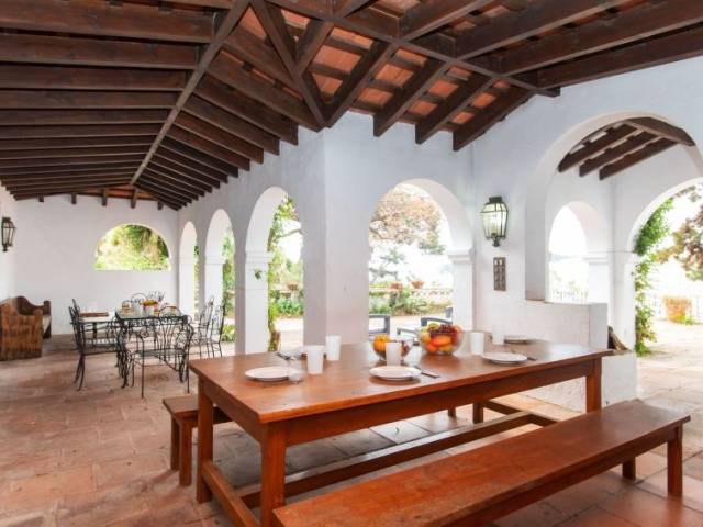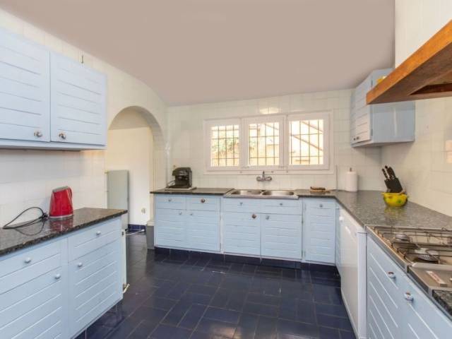 "Casttle Beach", villa 7 estancias 500 m2. Espacioso y luminoso, con mobiliario muy confortable: salón-comedor con mesa de comedor y TV digital. Salida al jardín, orientación sur y orientación oeste. 1 dorm. doble con 1 cama de matrimonio (150 cm, 190 cm de longitud), baño/ducha/bidet/WC. Grande cocina abierta (4 fogones, horno, lavavajillas, tostadora, hervidor de agua eléctrico, microondas, congelador, cafetera eléctrica) con mesa de comedor. Salida al jardín. Baño/ducha/WC. Ningún tipo de calefacción. Planta superior: 3 dorm., cada habitación con 1 cama de matrimonio (150 cm, 190 cm de longitud). Baño/ducha/WC. Planta superior 2: salón-comedor con barra americana y TV digital. Salida al jardín, orientación sur y orientación oeste. 1 dorm. doble con 2 camas (90 cm, 190 cm de longitud). 1 dorm. doble con 1 cama de matrimonio (150 cm, 190 cm de longitud). Pequeña cocina abierta (4 fogones, tostadora, hervidor de agua eléctrico, microondas, cafetera eléctrica). Baño/ducha/WC. Suelo de piedra natural. Jardín grande, césped. Muebles de terraza, barbacoa, tumbonas, porche, rincón para sentarse. Vista panorámica muy bonita al mar, a la piscina y al jardín. El alojamiento dispone de: lavadora, plancha, trona, cuna hasta 2 años, secador de pelo. Internet (Wifi, gratis). A tener en cuenta: adecuado para familias. 1 mascota / perro. TV solamente ES. No hay conexión interna entre las diferentes unidades. Exclusivamente familias Casa principal con 4 habitaciones dobles y casa anexa en el jardin con cocina, comedor, baño y dos habitaciones dobles. HUTG-014961