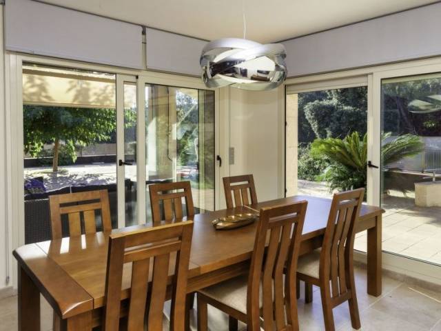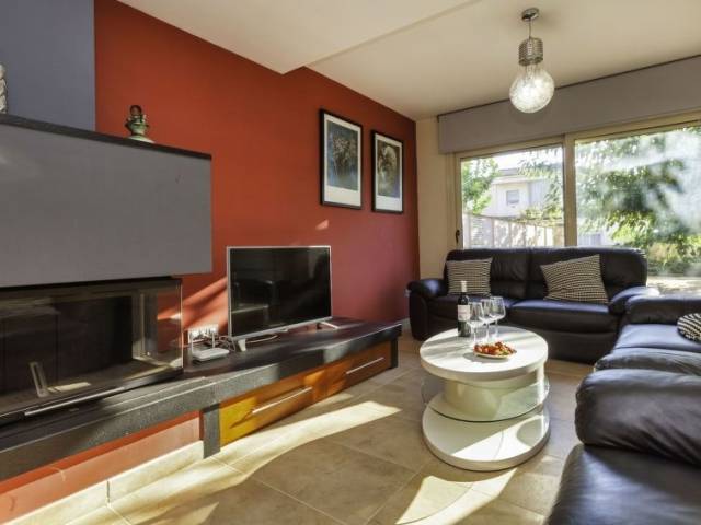 Mas Arbos a 1 km de Lloret de mar: No acepta grupos de jovenes casa adosada "Mas Arboç", moderna, lujosa de 2 plantas, reformada en 2020. 4 casas en el complejo. Lugar tranquilo, soleado, zona con poco tráfico, a 800 m del mar, a 800 m de la playa, orientación suroeste. Comunitario: jardín grande con césped, piscina rectangular (Disponible por temporada: 01.Jun. - 31.Oct. horario piscina: 10:00-21:00). Ducha exterior. Privado: terreno (vallada), jardín grande, bonito. En el inmueble: Wifi, aire acondicionado, lavadora. Acceso por escaleras (3 escalones) hasta la casa. Aparcamiento (para 2 coches, cubierto). Tienda, supermercado 200 m, restaurante 300 m. Atracciones en los alrededores: Waterworld lloret de mar 2 km, Marinland Blanes 8 km, Pueblo medieval de Tossa de mar 13 km. A tener en cuenta: coche recomendable. Adecuado para familias. El propietario no acepta grupos. El propietario no acepta grupos de adolescentes/jóvenes. Una parte de la casa está cerrada e inocupada. Vecindario muy sensible a ruidos. Se ruega respetar la tranquilidad y normas de buen comportamiento. "Mas Arbos", casa adosada 5 habitaciones 200 m2 en 2 plantas, orientación suroeste. Espacioso y luminoso, reformada en 2020, con mobiliario muy confortable y moderno: salón-comedor con ventanal con mesa de comedor, TV y aire acondicionado. Salida a la terraza-jardín. 1 dorm. para niños, ventana al patio con 1 cama (90 cm, 190 cm de longitud), persianas eléctricas. Grande cocina (horno, lavavajillas, 4 placas de vitrocerámica, tostadora, hervidor de agua eléctrico, microondas, congelador, cafetera eléctrica). Salida a la terraza-jardín. Ducha/WC. Ningún tipo de calefacción. Planta superior: 1 dorm. doble, grande con ventanal con 1 cama (160 cm, 200 cm de longitud), ducha/bidet/WC y aire acondicionado. Salida a la terraza. 2 dorm. dobles con ventanal, cada habitación con 1 cama de matrimonio (150 cm, 200 cm de longitud). Salida a la terraza. Ducha/bidet/WC. Ningún tipo de calefacción. Suelo de piedra natural. Terraza grande, orientación sur y orientación oeste. Muebles de terraza, barbacoa, tumbonas, porche. Vista al bosque. El alojamiento dispone de: lavadora, plancha, trona, cuna hasta 2 años, secador de pelo. Internet (Wifi, gratis). Plaza de aparcamiento (cubierto, 2 Coches). A tener en cuenta: adecuado para familias. TV solamente ES. Entrada privada. HUTG021557 Mas Arbos a 1 km de Lloret de mar: Casa adosada "Mas Arbos", moderna, lujosa de 2 plantas. A 1 km del centro de Lloret de Mar, lugar tranquilo, soleado, zona con poco tráfico, a 800 m del mar, a 800 m de la playa, orientación suroeste. Comunitario: jardín grande con césped, piscina rectangular (10 x 5 m, 90 - 190 cm de profundidad, Disponible por temporada: 01.May. - 31.Oct.). Ducha exterior. Privado: terreno (vallada), jardín pequeño, bonito, cuidado. En el inmueble: Wifi, aire acondicionado, lavadora. Aparcamiento (para 2 coches, cubierto). Tienda, supermercado 800 m, restaurante 100 m. Atracciones en los alrededores: Waterworld lloret de mar 2 km, Marinland Blanes 8 km, Pueblo medieval de tossa de mar 13 km. A tener en cuenta: coche recomendable. Adecuado para familias. El propietario no acepta grupos. El propietario no acepta grupos de adolescentes/jóvenes. Una parte de la casa está cerrada e inocupada. Vecindario muy sensible a ruidos. Se ruega respetar la tranquilidad y normas de buen comportamiento. HUTG021557