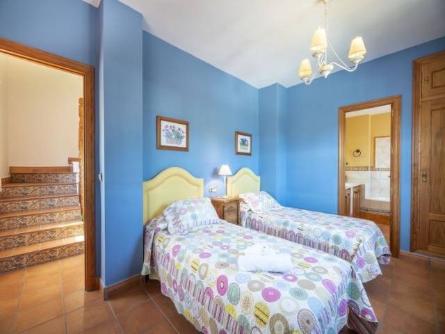 "Montecarlo", villa 6 estancias 300 m2 en 3 plantas, orientación sur. Con mobiliario funcional y confortable: salón-comedor con chimenea, mesa de comedor, baño/WC, TV satélite, TV digital, canales internacionales y aire acondicionado. Salida a la terraza-jardín, a la piscina. Cocina (horno, lavavajillas, 4 placas de vitrocerámica, tostadora, microondas, congelador, cafetera eléctrica). WC separado. Planta superior: 1 dorm. con 1 sofá-cama (90 cm, 190 cm de longitud), 1 cama de matrimonio (150 cm, 190 cm de longitud), baño/bidet/WC, doble lavabo y bañera de hidromasaje. Salida al balcón. 1 dorm. con 2 camas (90 cm, 190 cm de longitud), baño/bidet/WC y doble lavabo (privado). Aire acondicionado, aire caliente. Planta superior 2: 1 dorm., abuhardillado con 1 cama de matrimonio (135 cm, 190 cm de longitud), 1 cama-nido (2 pers. 2 x 90 cm, 180 cm de longitud). 1 dorm., abuhardillado con 1 cama (90 cm, 190 cm de longitud), 1 cama-nido (2 pers. 2 x 90 cm, 190 cm de longitud). 1 dorm., abuhardillado con 1 cama y 1 cama-nido (2 pers.). Salida al balcón. Baño/bidet/WC. Aire acondicionado, aire caliente. Buhardilla: con 2 camas (90 cm, 190 cm de longitud). Terraza-jardín. Muebles de terraza, barbacoa, tumbonas. El alojamiento dispone de: lavadora, secadora, plancha, cuna, secador de pelo. Internet (Wifi, gratis). A tener en cuenta: adecuado para familias. Casa para no fumadores. 1 mascota / perro. Extintores. VFT/MA/01851
