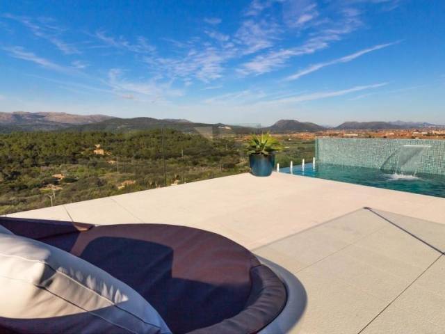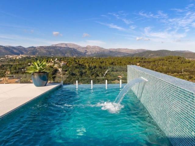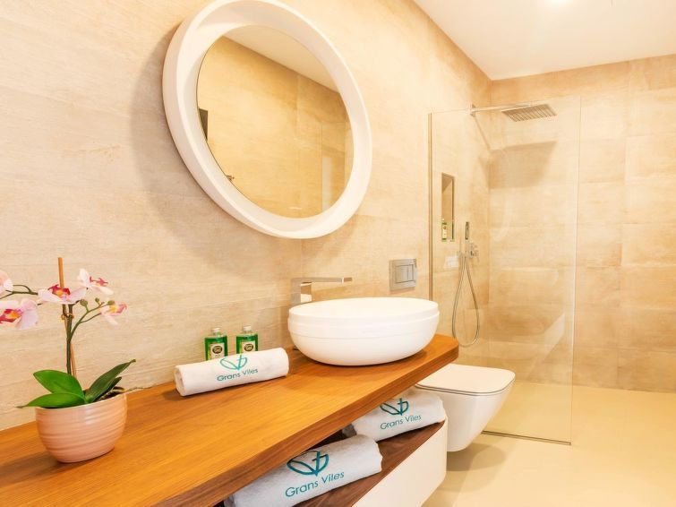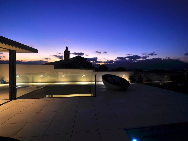 Casa unifamiliar, de nueva construcción, moderna, lujosa "Montblau", reformada en 2018. Equipamiento de la vivienda: bañera de hidromasaje, calefacción central, aire acondicionado, solarium, lavadora (privado). Parking: en la calle. Situación: en el centro de Buger, lugar tranquilo, soleado en un barrio residencial. Vista desde la vivienda a las montañas y al bosque. Entorno de la vivienda: terreno (privado, 600 m2), piscina (privado, longitud 5 m x ancho 3 m), ducha exterior (privado), barbacoa (privado). Infraestructura y distancias: tienda 100 m, restaurante 100 m, playa de arena 15 km. A tener en cuenta, en las proximidades hay un aeropuerto a 40 km. El propietario no acepta grupos de adolescentes/jóvenes. Vecindario muy sensible a ruidos. Se ruega respetar la tranquilidad y normas de buen comportamiento. Casa independiente, 5 piezas para 8 personas, 400 m2, con mobiliario moderno y lujoso. Salón-comedor con TV satélite y TV cable. Fumar permitido. Internet (Wifi). Dormitorio con 1 cama de matrimonio. Dormitorio con 1 cama de matrimonio. Dormitorio con 1 cama de matrimonio. Dormitorio con 2 camas individuales. Cocina abierta con microondas, horno, grill, mesa de comedor, lavavajillas y frigorifico. Baño, baño/WC, ducha/WC, bidet y WC separado. Terraza-jardín 200 m2, muebles de terraza, 8 tumbonas. Otros equipamientos: caja fuerte, trona, secador de pelo, lavadora, piscina de hidromasaje. ETV/3729