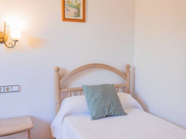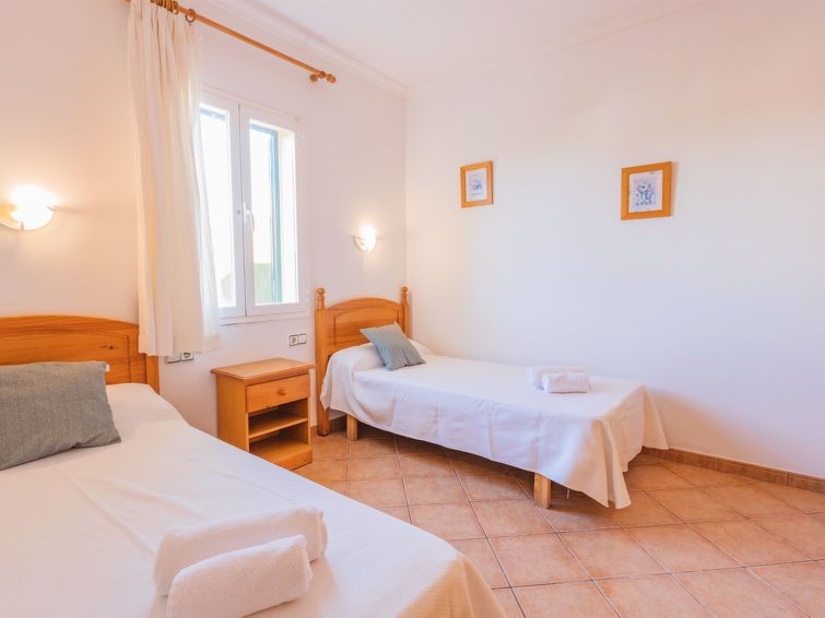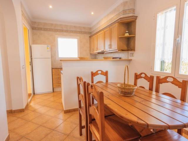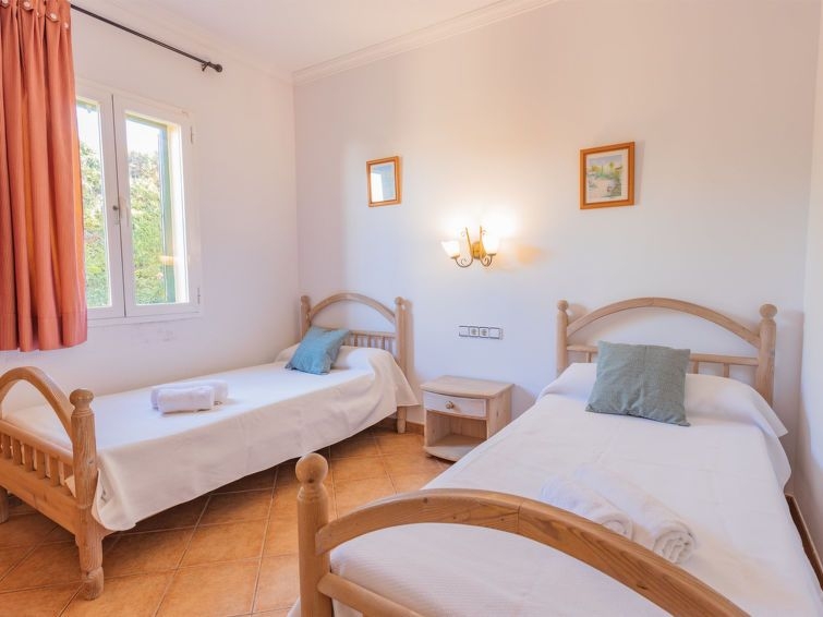 Villa, idónea para niños, confortable, agradable "Villa Llebeig", rodeada de árboles. Equipamiento de la vivienda: aire acondicionado, lavadora (privado). Parking: parking al lado de la vivienda, plaza de parking reservada en la calle. Acceso en coche todo el año. Coche recomendado, acceso por escaleras con 5 peldaños. Situación: lugar tranquilo, soleado en una pendiente, en la playa. Vista desde la vivienda al mar y al jardín. Entorno de la vivienda: terreno (privado, 799 m2), jardín (privado), piscina (privado, longitud 9 m x ancho 5 m), ducha exterior (privado), parque infantil (comunitario), tenis (comunitario), barbacoa (privado). Infraestructura y distancias: tienda 400 m, supermercado 1.8 km, restaurante 900 m, playa de arena 1.9 km, campo de golf 20 km, tenis 1.2 km, centro ecuestre 100 m, parada de autobús 700 m. A tener en cuenta, en las proximidades hay un aeropuerto a 20 km. Casa independiente, 4 piezas para 6 personas, 100 m2, con mobiliario confortable y agradable. Salón-comedor con TV satélite. Fumar no permitido. Internet (Wifi). Dormitorio con 1 cama doble. Dormitorio con 2 camas individuales. Dormitorio con 2 camas individuales. Cocina con 4 quemadores y frigorifico. Ducha y ducha/WC. Otros equipamientos: lavadora. VTV276ME