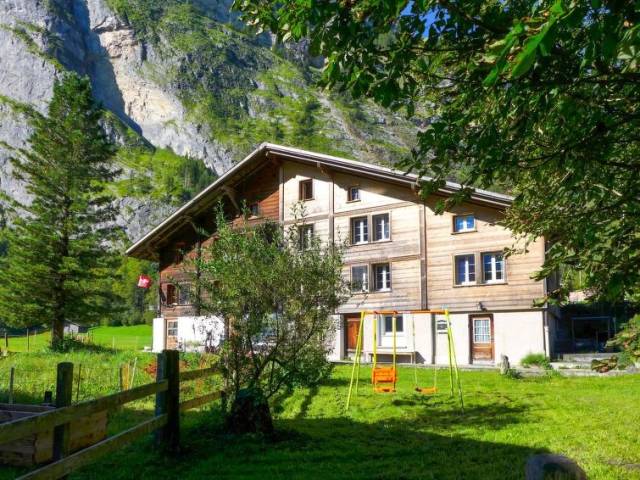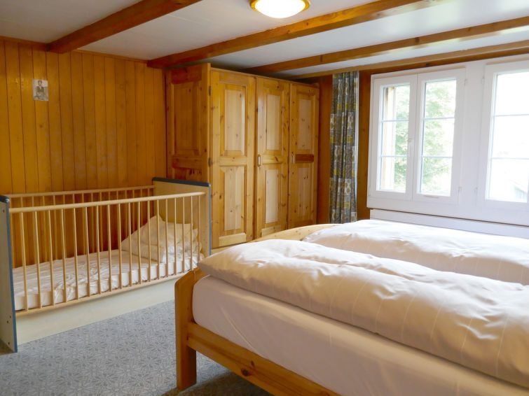Innertkirchen a 5 km de Meiringen: Chalet tipo suizo "Chalet Wychel", amplio, idóneo para niños, agradable de 4 plantas, adosada por un lado, rodeado de árboles y prados. En la periferia, lugar tranquilo, soleado, en el campo. Privado: terreno en estado natural con plantas y árboles, pradera. Terraza-jardín, muebles de jardín, barbacoa, lugar para hoguera, parque infantil. En el inmueble: sala para guardar bicicleta, sala guardaesquís, calefacción central, lavadora, secadora. Acceso estrecho hasta el terreno. Aparcamiento (para 3 coches) a 100 m en el mismo terreno. Tienda 1 km, supermercado 1 km, restaurante 700 m, estación de tren "Innertkirchen" 1 km, piscina 4.5 km, piscina cubierta 4.5 km. Tenis 4.5 km, rutas de senderismo desde la casa, caminos para bicicletas 1 m, teleférico 5 km, remontes 5 km, escuela de esquí 5 km, pista de esquí de fondo 14 km. Atracciones en los alrededores: Aareschlucht, Reichenbach Wasserfall, Grimselwelt. Zonas de esquí populares fácilmente accesibles: Meiringen-Hasliberg. Lagos conocidos fácilmente accesibles: Brienzersee. Zona de senderismo Rosenlaui, Urbachtal. A tener en cuenta: coche recomendable. Grupos de jóvenes sólo bajo petición. Carga y descarga de equipaje posible en la casa de vacaciones. Vecindario muy sensible a ruidos. Se ruega respetar la tranquilidad y normas de buen comportamiento. Casa pareada 8 estancias 200 m2 en 4 plantas. Con mobiliario funcional y agradable: altura de techo 190 - 200 cm, Marcos de puerta bajos, altura 180 cm. En planta inferior: entrada. Baño/ducha/WC. Planta superior: salón con mesa de comedor, pantalla plana, radio y DVD. Habitación de paso con mesa de comedor. Salida a la terraza-jardín. 1 dorm. con 1 cama de matrimonio (160 cm, 190 cm de longitud). 1 dorm. con 2 camas (90 cm, 190 cm de longitud). Grande cocina (3 fogones, horno, lavavajillas, tostadora, hervidor de agua eléctrico, congelador, cafetera eléctrica, horno Raclette, set de Fondue (queso)). WC separado. Planta superior 2: 1 dorm., grande con 1 cama de matrimonio (160 cm, 190 cm de longitud). 1 dorm. con 2 camas (90 cm, 190 cm de longitud). Grande cocina-comedor 20 m2 (horno, lavavajillas, 4 placas de vitrocerámica, cafetera eléctrica) con mesa de comedor. Ducha/WC. Buhardilla: (escalera empinada) 2 dorm., cada habitación con 2 camas (90 cm, 190 cm de longitud). Suelo de madera, moqueta. Vista muy bonita a las montañas y al paisaje. El alojamiento dispone de: plancha, trona, cuna hasta 3 años (extra), secador de pelo. Internet (Wifi, gratis). A tener en cuenta: adecuado para familias. Apartamento para no fumadores. Detector de humo, extintores. Si el número de personas que ocupan la casa vacacional fuera inferior al máximo posible, no todos los dormitorios estarán disponibles.