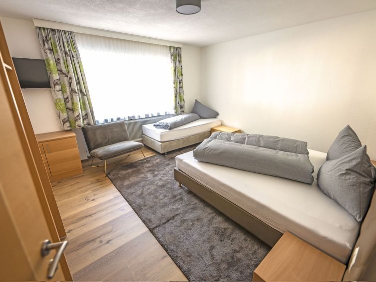 "Apart 5", apartamento de 2 estancias 45 m2 en el 2° piso. Vivienda adecuada para 3 adultos + 2 niños. Con mobiliario bonito y moderno: 1 dorm., grande con 1 cama, 1 cama doble y ducha/WC. Salida al balcón. Cocina-comedor (lavavajillas, 2 placas de vitrocerámica, tostadora, hervidor de agua eléctrico, cafetera eléctrica) con mesa de comedor y TV cable (pantalla plana). Salida al balcón. Ducha/WC. Calefacción. Suelo de parquet. Balcón grande, orientación norte. Vista bonita al valle y a la localidad. El alojamiento dispone de: secador de pelo. Internet (Wifi). A tener en cuenta: apartamento para no fumadores.