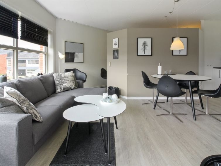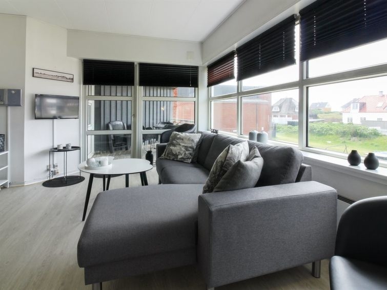 "Leenke" - 100m from the sea in Western Jutland", apartamento de 2 estancias 63 m2. Vivienda adecuada para 4 adultos. Salón con TV y CD. 1 dorm. con 1 cama doble. 1 dorm. con 2 camas. Cocina (horno, lavavajillas, 4 placas de vitrocerámica, microondas, congelador). Ducha/WC. El alojamiento dispone de: Internet (Wifi). Plaza de aparcamiento junto a la casa. A tener en cuenta: apartamento para no fumadores.