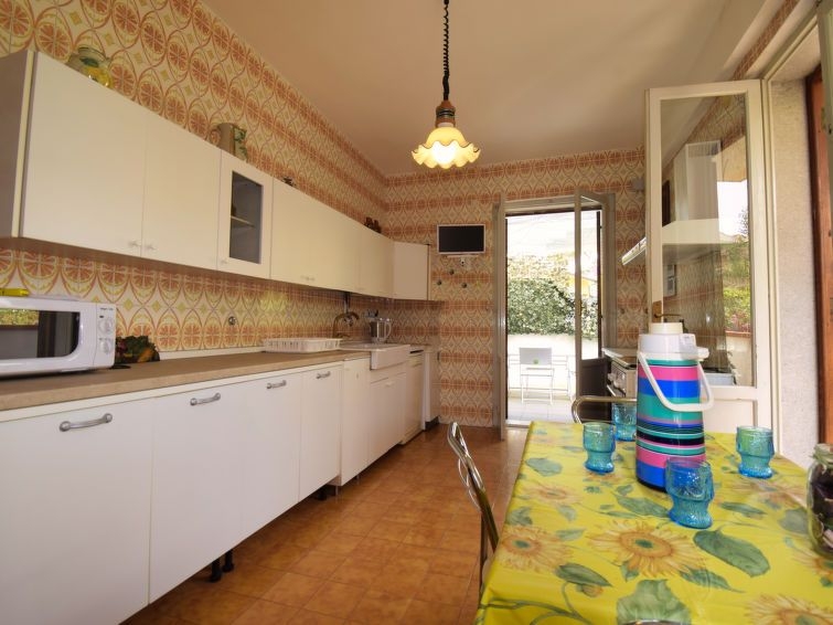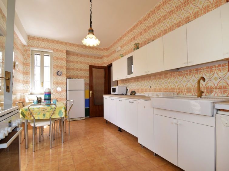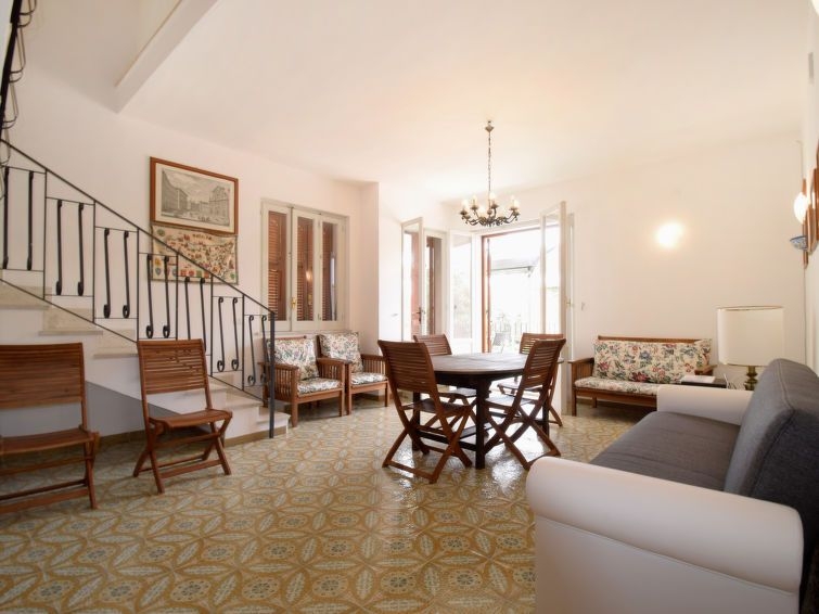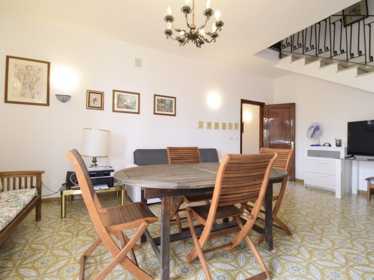 Casa 5 estancias 160 m2 en 3 plantas. Reformada en 2017, con mobiliario sencillo y funcional: grande cocina abierta 90 m2 (6 fogones, horno, congelador) con mesa de comedor, TV (pantalla plana). Ducha/WC. Planta superior: (escalera exterior) salón-comedor con 1 sofá-cama doble y TV (pantalla plana). Salida a la terraza. Entrada con aire acondicionado y bomba de calor, caliente. 1 dorm. doble con ducha/bidet/WC y TV (pantalla plana). Salida al balcón acristalado. 1 dorm. doble con TV (pantalla plana). Salida a la terraza. 1 dorm. con 2 camas. Salida al balcón. Cocina (horno, lavavajillas, 4 fuegos, tostadora, hervidor de agua eléctrico, microondas, congelador, cafetera eléctrica) con mesa de comedor, TV (pantalla plana). Salida a la terraza. Ducha/bidet/WC. Aire acondicionado, aire caliente (extra). Buhardilla: (escalera exterior) cabina abuhardillada, altura de techo 120 - 240 cm con 1 cama doble, ducha y TV (pantalla plana). Rincón-cocina (horno, 4 fuegos, microondas, congelador). Salida a la terraza. WC separado. Calefacción, calefacción eléctrica, aire acondicionado, aire caliente. Calefacción disponible desde el 01.12. al 31.03, Calefacción no en todas las estaciones. Terraza grande 60 m2 parcialmente cubierta terraza grande 20 m2. Muebles de terraza. Vista al mar y a la localidad. El alojamiento dispone de: lavadora, plancha, trona, cuna hasta 2 años, secador de pelo. Internet (Wifi, gratis). Plaza de aparcamiento (2 Coches). A tener en cuenta: casa para no fumadores. Permitido máximo 1 mascota / perro. Sin ascensor. No hay conexión interna entre las diferentes unidades. CIR:19089017C219153
