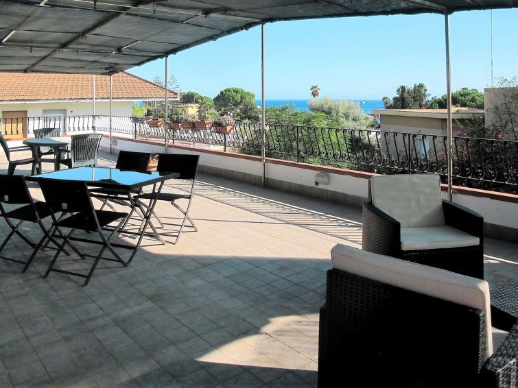 "Mansarda-La Grande Musa" estudio 20 m2, en el ático. Con mobiliario sencillo y funcional: salón-dormitorio abuhardillado, altura de techo 120 - 240 cm con 1 cama doble, ducha y TV (pantalla plana), aire acondicionado y bomba de calor, caliente. Rincón-cocina (4 fogones, horno, microondas, congelador). Salida a la terraza. WC separado. Calefacción, aire acondicionado, aire caliente (extra). Calefacción disponible desde el 01.12. al 31.03, Calefacción no en todas las estaciones. Terraza grande 60 m2 parcialmente cubierta terraza 20 m2. Muebles de terraza. Vista parcial al mar y a la localidad. El alojamiento dispone de: lavadora, plancha, trona, cuna hasta 2 años, secador de pelo. Internet (Wifi, gratis). Plaza de aparcamiento (1 coche). A tener en cuenta: apartamento para no fumadores. Permitido máximo 1 mascota / perro. Sin ascensor. No hay conexión interna entre las diferentes unidades. CIR:19089017C219153