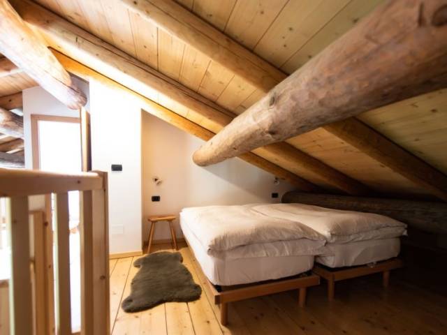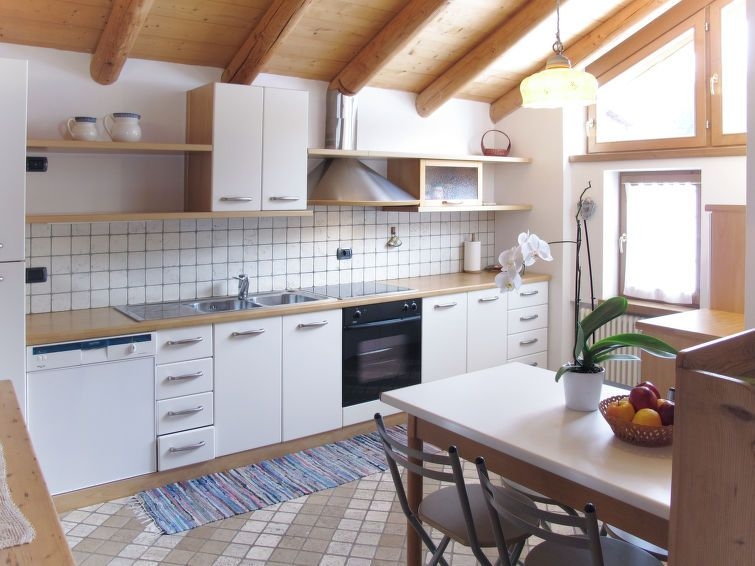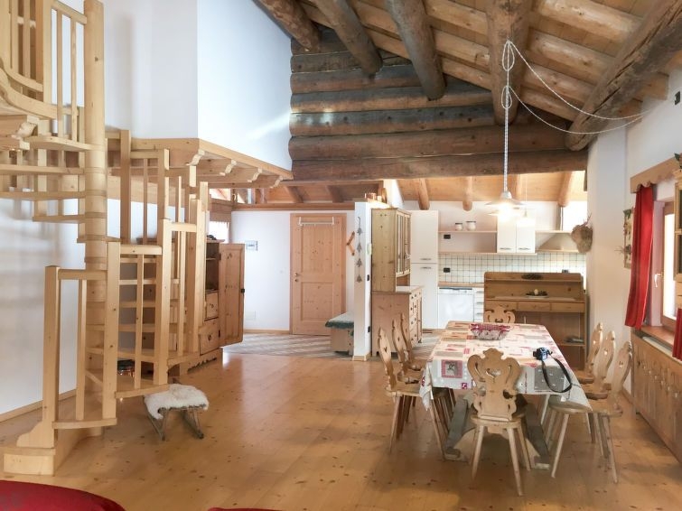 "Chalet "Baita Tabià" Dolomites", chalet de madera 4 estancias 155 m2 en 2 plantas. Con mobiliario de buen gusto y con mucha madera: salón con 1 sofá-cama, mesa de comedor y TV. 1 dorm. con 1 cama de matrimonio (160 cm). 1 dorm. con 3 camas (80 cm). Cocina abierta (horno, lavavajillas, 4 placas de vitrocerámica, tostadora, hervidor de agua eléctrico, microondas, congelador, cafetera eléctrica) con mesa de comedor. WC separado, baño/ducha/WC. Planta superior: 1 dorm., abuhardillado, abierto con 2 camas. 1 dorm., abuhardillado con 2 camas. Ducha/WC. Calefacción de gas. Suelo de madera, suelo de piedra natural. Jardín, césped. Barbacoa, tumbonas (8). Vista panorámica bonita. El alojamiento dispone de: lavadora, cuna, secador de pelo. Internet (Wifi, gratis). A tener en cuenta: apartamento para no fumadores. 2 mascotas / perros. CIPAT:022147-AT-060734
