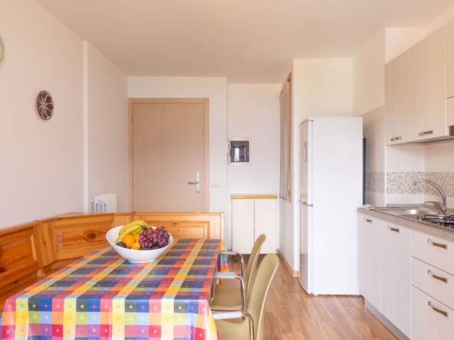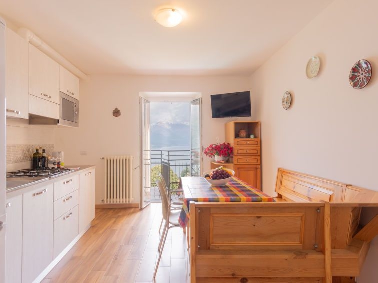 "Ortensia", apartamento de 3 estancias 60 m2 en el 1° piso. Luminoso, con mobiliario funcional: 1 dorm. doble con 1 cama doble. Salida al balcón. 1 dorm. con 1 x 2 literas. Cocina-comedor (4 fogones, hervidor de agua eléctrico, microondas) con TV satélite. Salida al balcón. Ducha/WC. Calefacción de gas. Balcón 8 m2. Muebles de balcón. Vista espléndida al lago y a las montañas. El alojamiento dispone de: Internet (Wifi). A tener en cuenta: apartamento para no fumadores. 097067-CNI-00104