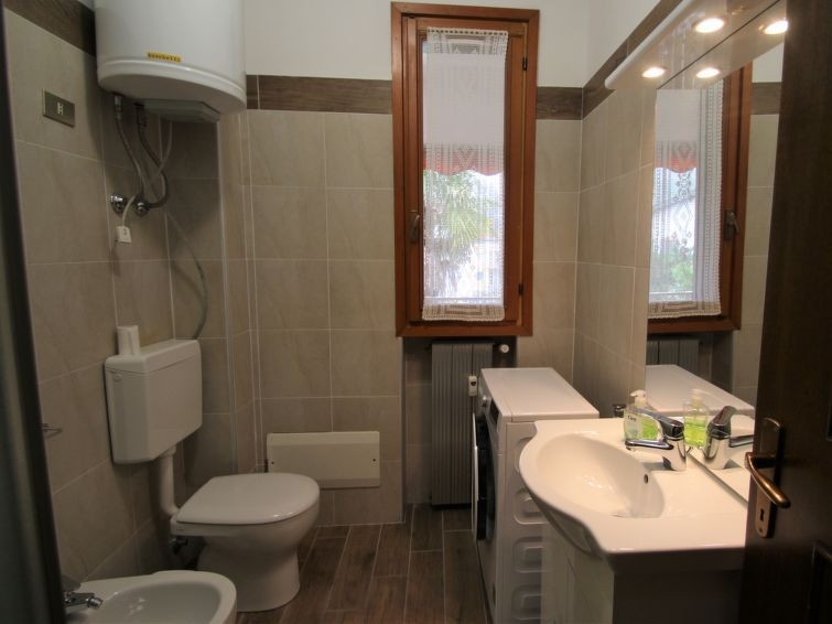 Apartamento de 3 estancias 100 m2 en el 3° piso. Con mobiliario funcional: salón-comedor con chimenea (sólo con función decorativa), mesa de comedor y TV satélite. Salida a la terraza. 1 dorm. doble. 1 dorm. con 2 camas. Salida a la terraza. Pequeña cocina (horno, lavavajillas, 4 fuegos, microondas, congelador, cafetera eléctrica). Baño/bidet/WC, ducha/bidet/WC. Calefacción de gas, aire acondicionado (extra). Calefacción disponible desde el 15.10. al 15.04. Suelo de parquet. Terraza 50 m2 parcialmente cubierta. Muebles de terraza, tumbonas (2). Vista al lago. El alojamiento dispone de: lavadora, trona, cuna hasta 2 años. Internet (Wifi, gratis). A tener en cuenta: apartamento para no fumadores. Permitido máximo 1 mascota / perro. CIR:00300800069