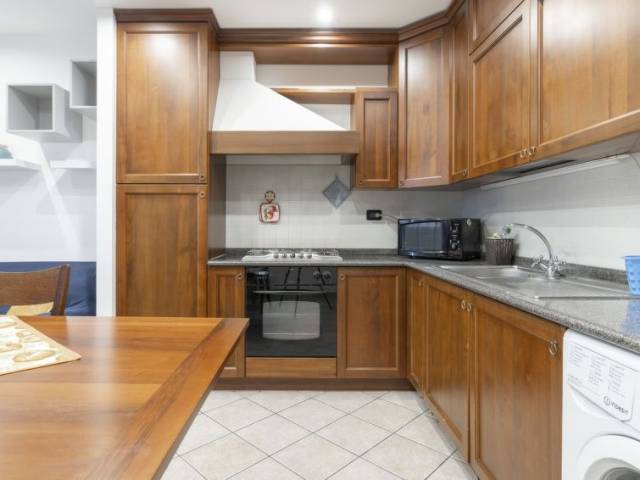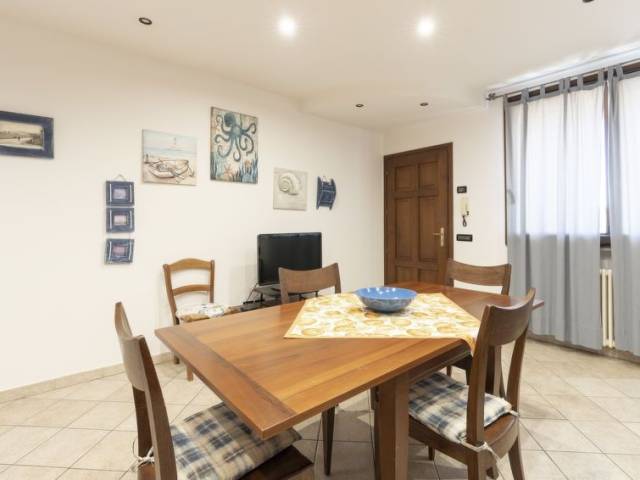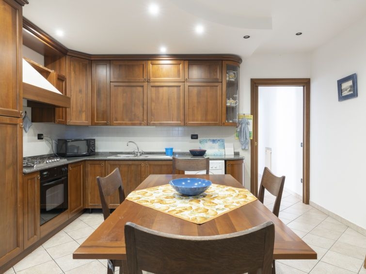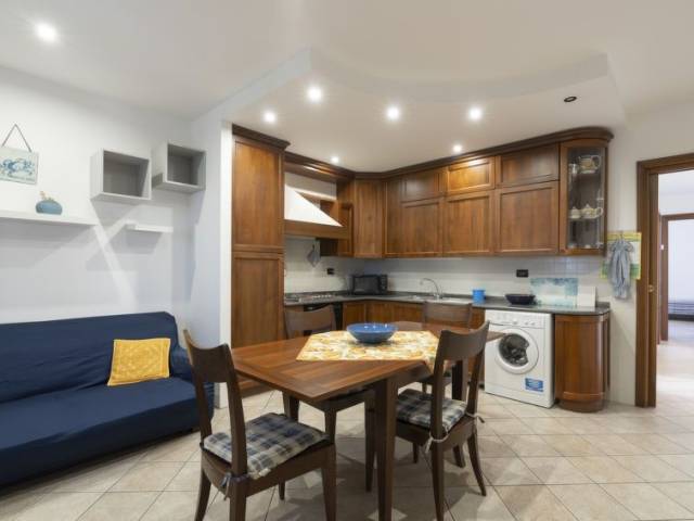 "Ca' du Né", apartamento de 3 estancias 80 m2, en planta superior. Luminoso, con mobiliario funcional: planta superior: (escalera exterior) salón-dormitorio con 1 sofá-cama doble (140 cm), mesa de comedor y TV. Salida a la terraza. 1 dorm. con 1 cama de matrimonio (160 cm). 1 dorm. con 1 cama-nido (2 x 80 cm). Cocina abierta (5 fogones, horno, lavavajillas, microondas, congelador). Baño/WC. Calefacción de gas. Balcón, terraza-jardín. Muebles de balcón, barbacoa, tumbonas (2), trastero. El alojamiento dispone de: lavadora, trona, cuna. Internet (Wifi, gratis). Plaza de aparcamiento (1 coche) junto a la casa. A tener en cuenta: adecuado para familias. 1 mascota / perro. Entrada privada. CITRA:009002-LT-0128