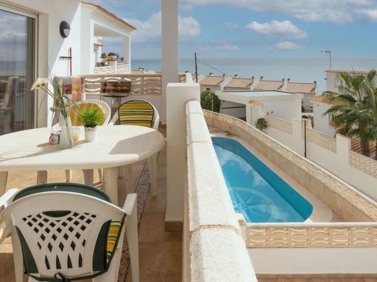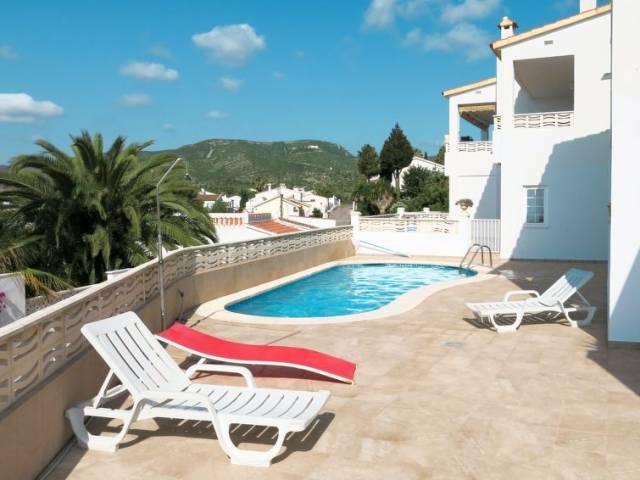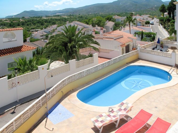Resort "Escudos", de 2 plantas. 7 apartamentos en la residencia. En el barrio de Monte Pichells, a 1.5 km del centro de Peñiscola, a 130 km del centro de Valencia, a 130 km del centro de Tarragona, en una pendiente, a 400 m del mar, en una calle sin salida. Comunitario: piscina en forma de riñon (35 m2, 170 cm de profundidad, Disponible por temporada: 01.Ene. - 31.Dic.). Ducha exterior, terraza. En el complejo: lavadora, secadora (uso comunitario). Acceso por escaleras hasta la casa. Garaje comunitario junto a la casa. Tienda 1.5 km, supermercado 1.5 km, playa de arena 1.8 km, playa rocosa 400 m (pequeña). A tener en cuenta: coche recomendable. Los alojamientos pueden diferir en la superficie habitable, la distribución de las estancias, el equipamiento y el mobiliario.