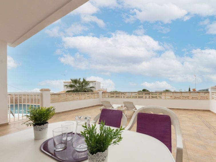 Resort "Escudos", de 2 plantas. 7 apartamentos en la residencia. En el barrio de Monte Pichells, a 1.5 km del centro de Peñiscola, a 130 km del centro de Valencia, a 130 km del centro de Tarragona, en una pendiente, a 400 m del mar, en una calle sin salida. Comunitario: piscina en forma de riñon (35 m2, 170 cm de profundidad, Disponible por temporada: 01.Ene. - 31.Dic.). Ducha exterior, terraza. En el complejo: lavadora, secadora (uso comunitario). Acceso por escaleras hasta la casa. Garaje comunitario junto a la casa. Tienda 1.5 km, supermercado 1.5 km, playa de arena 1.8 km, playa rocosa 400 m (pequeña). A tener en cuenta: coche recomendable. Los alojamientos pueden diferir en la superficie habitable, la distribución de las estancias, el equipamiento y el mobiliario.