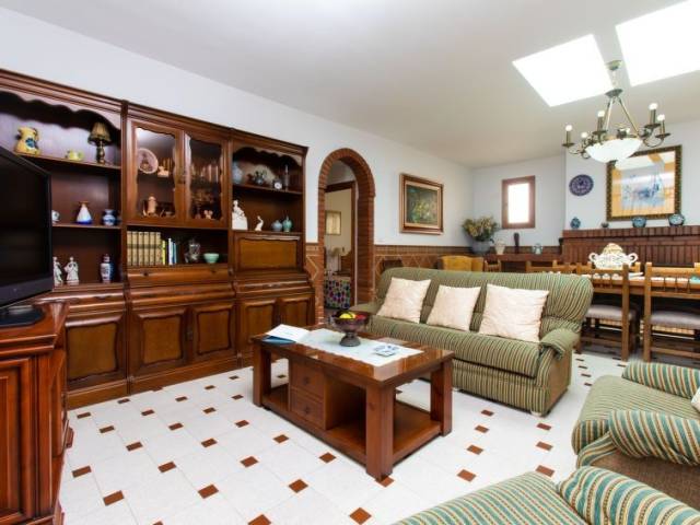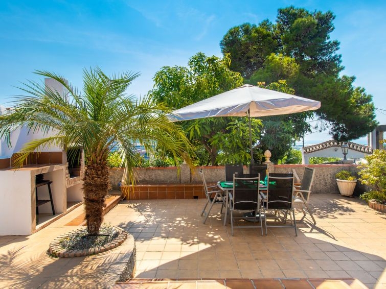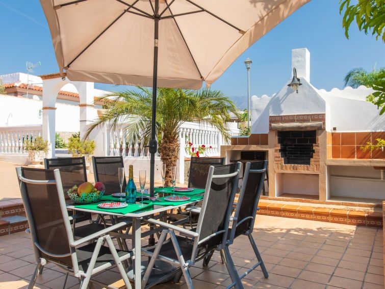 "El Pino (AMU555)", casa 4 estancias 130 m2. Con mobiliario agradable: salón-comedor con chimenea, mesa de comedor, TV satélite y estufa eléctrica. Salida a la terraza. 1 dorm. con 1 cama de matrimonio (135 cm, 190 cm de longitud), calefacción eléctrica y ventilador. 2 dorm., cada habitación con 2 camas (90 cm, 190 cm de longitud), ventilador. Cocina (horno, 4 placas de vitrocerámica, hervidor de agua eléctrico, microondas, congelador, cafetera eléctrica). Ducha/WC. 2 terrazas parcialmente cubierta. Muebles de terraza, barbacoa, tumbonas (4), trastero. Vista al mar y a las montañas. El alojamiento dispone de: lavadora, plancha, cuna. Internet (Wifi, gratis). Permitido máximo 1 mascota / perro. VTAR/GR/01660