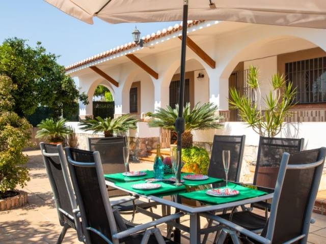 Casa "Finca el Pino", agradable. A 2.5 km del centro de Motril, a 10 km del centro de Salobreña, a 5 km del mar. Privado: terreno en estado natural 1'000 m2 (vallada) con árboles, piscina (10 x 4 m, 130 - 190 cm de profundidad, Disponible por temporada: 01.May. - 01.Nov.) con sistema de limpieza por electrolysis de sal. Ducha exterior, muebles de jardín, barbacoa. Acceso por escaleras (6 escalones) hasta la casa. Aparcamiento (para 2 coches) en el mismo terreno. Tienda 200 m, playa de arena 5 km.