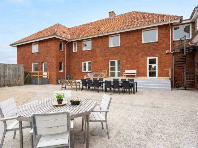 Casa unifamiliar del año 1950. A 100.0 km del mar. Privado: terreno en estado natural 2'000 m2, piscina cubierta (4.5 x 25 m, 11'2.5 m2, 180 - 180 cm de profundidad). Terraza (70 m2), barbacoa, parque infantil (tobogán, columpio). En el inmueble: sauna, futbolín, lavadora, secadora. Aparcamiento junto a la casa. Tienda de comestibles 900 m. "Saga" in Western Jutland", casa 12 estancias 1'000 m2. Vivienda adecuada para 24 adultos. Salón con TV, CD, equipo de música y DVD. 1 dorm. con 1 cama doble. 1 dorm. con 1 cama doble. Cocina (8 fogones, horno, lavavajillas, microondas, congelador). 7 ducha/WC. Planta superior: 1 dorm. con 1 cama doble. 1 dorm. con 1 cama doble. 1 dorm. con 1 cama doble. 1 dorm. con 1 cama doble. 1 dorm. con 1 cama doble. 1 dorm. con 1 cama doble. 1 dorm. con 1 cama doble. 1 dorm. con 1 cama doble. 1 dorm. con 1 cama doble. 1 dorm. con 1 cama doble. Vista al mar. El alojamiento dispone de: trona, cuna (extra). Internet (Wifi). A tener en cuenta: apartamento para no fumadores. Permitido máximo 2 mascotas / perros.