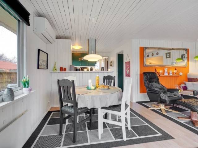 Casa unifamiliar del año 1986. A 7.2 km del mar. Comunitario: jardín. Privado: terreno en estado natural 987 m2, jardín (vallado). Terraza (26 m2), barbacoa, aparcamiento junto a la casa. Estación de carga eléctrica. Tienda de comestibles 800 m. El propietario no acepta grupos de adolescentes/jóvenes. "Fritzie" - 600m to the inlet in Western Jutland", casa 2 estancias 59 m2. Vivienda adecuada para 4 adultos. Salón con TV. 1 dorm. con 1 cama doble. 1 dorm. con 1 cama doble. Cocina (horno, lavavajillas, 4 placas de vitrocerámica, microondas, congelador). Ducha/WC. Terraza 7 m2, cubierta. El alojamiento dispone de: Internet (Wifi). A tener en cuenta: apartamento para no fumadores. Permitido máximo 1 mascota / perro.
