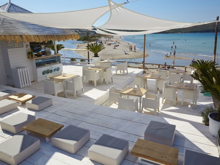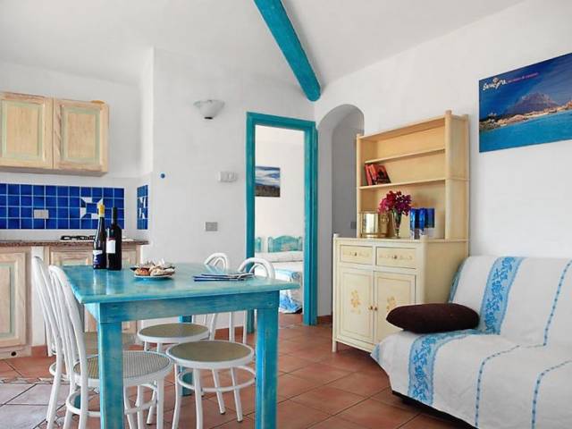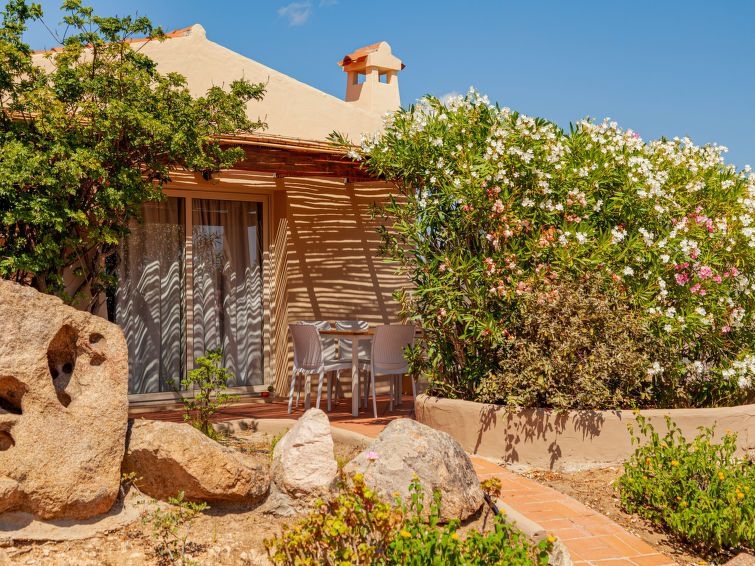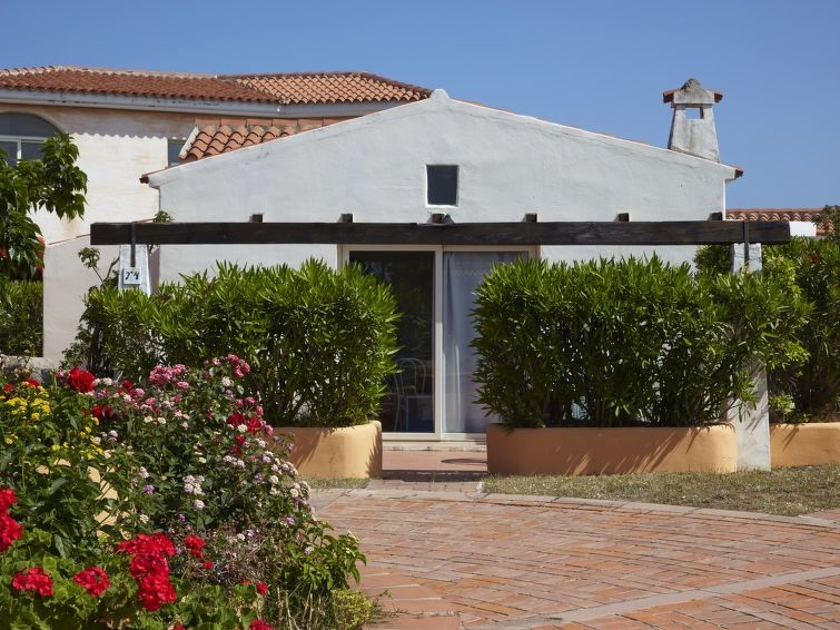 "Villa 6 - Lu Nibareddu", casa 3 estancias 60 hasta 65 m2. Con mobiliario sencillo: salón-dormitorio con 2 camas, mesa de comedor, TV satélite y aire acondicionado. 1 dorm. doble con ducha/WC. 1 dorm. con 2 posibilidades para dormir. Rincón-cocina (4 fuegos). Ducha/WC. Terraza. Muebles de terraza. El alojamiento dispone de: cuna (extra). Permitido máximo 1 mascota / perro.