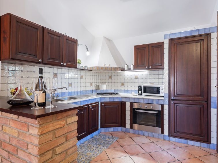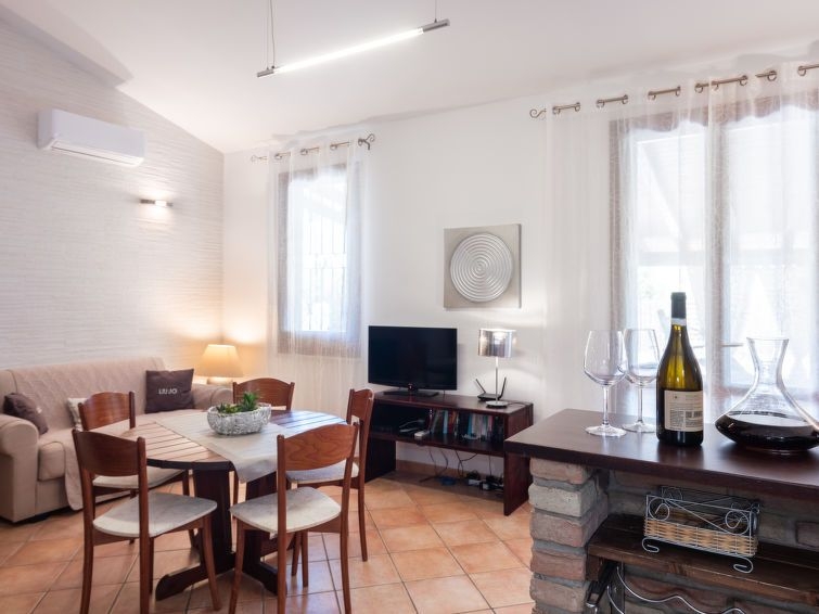 Villa 5 estancias 110 m2. Con mobiliario confortable y de buen gusto: salón-comedor con chimenea y TV satélite (pantalla plana), aire acondicionado y bomba de calor, caliente. Salida a la terraza-jardín. 2 dorm. dobles, cada habitación con ventilador. 1 dorm. con 1 cama y ventilador. 1 dorm. doble con ducha/WC y TV satélite (pantalla plana), aire acondicionado y bomba de calor, caliente. Rincón-cocina (4 fogones, horno, lavavajillas, tostadora, hervidor de agua eléctrico, microondas, cafetera eléctrica). Ducha/bidet/WC. Calefacción, aire caliente. Calefacción disponible desde el 01.12. al 31.03, Calefacción no en todas las estaciones. Terraza-jardín grande 30 m2, cubierta. Muebles de terraza, barbacoa, tumbonas. Vista a la piscina. El alojamiento dispone de: lavadora, plancha, trona, cuna hasta 2 años (extra), secador de pelo. Internet (Wifi, gratis). Plaza de aparcamiento (2 Coches). Si el número de personas que ocupan la casa vacacional fuera inferior al máximo posible, el edificio anexo no estará disponible. CIR:19081005C206884