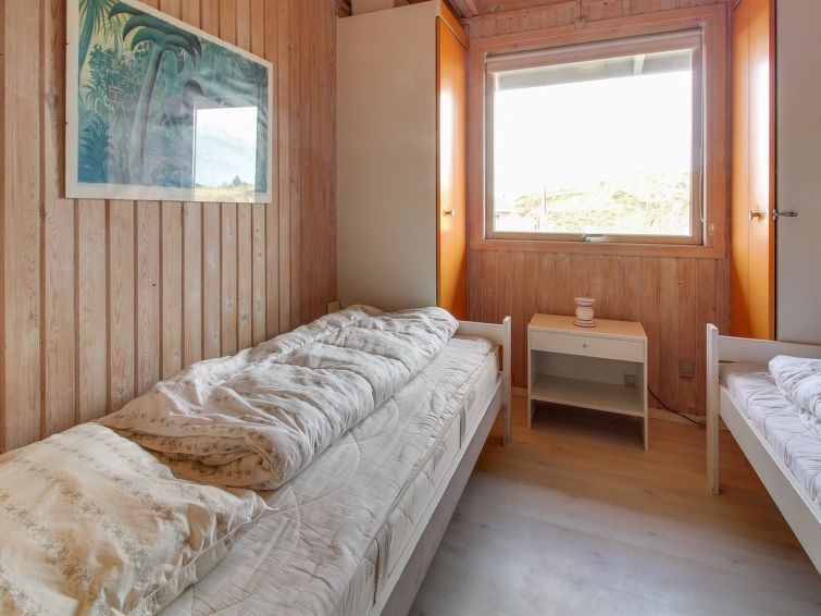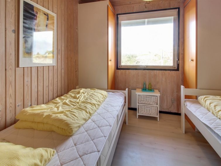 Casa unifamiliar del año 1980. A 700 m del mar. Privado: terreno en estado natural 1'800 m2. Terraza (15 m2). En el inmueble: lavadora. Tienda de comestibles 3.5 km. El propietario no acepta grupos de adolescentes/jóvenes. "Elsa" - 700m from the sea in Western Jutland", casa 3 estancias 85 m2. Vivienda adecuada para 6 adultos. Salón con TV, vídeo, radio, CD y equipo de música. 1 dorm. con 1 cama doble. 1 dorm. con 2 camas. 1 dorm. con 2 camas. Cocina (4 fogones, horno, lavavajillas, microondas, congelador). Ducha/WC. Terraza 23 m2, cubierta. El alojamiento dispone de: trona. Internet (Wifi). Permitido máximo 1 mascota / perro.