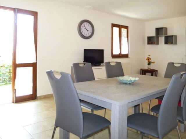 Apartamento de 3 estancias 70 m2, en planta baja, orientación sur. Con mobiliario funcional: salón-comedor con mesa de comedor y TV satélite. Salida a la terraza. 1 dorm. con 1 cama de matrimonio (160 cm). 1 dorm. con 2 camas. Pequeña cocina (horno, Estufa de gas, 5 fuegos, tostadora, microondas, congelador, cafetera eléctrica). Ducha/bidet/WC. Calefacción de gas. Terraza parcialmente cubierta, jardín, césped. Muebles de terraza, tumbonas (4). Vista panorámica al lago. El alojamiento dispone de: trona, cuna hasta 2 años. Internet (Wifi, gratis). Plaza de aparcamiento. A tener en cuenta: permitido máximo 1 mascota / perro. Entrada privada. CIR: 012092-CNI-00034