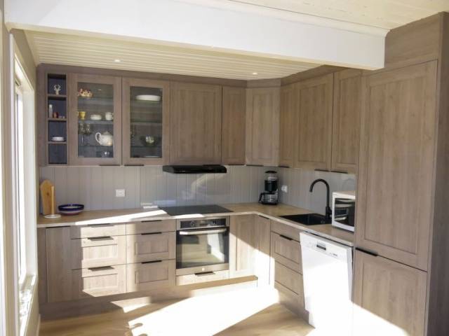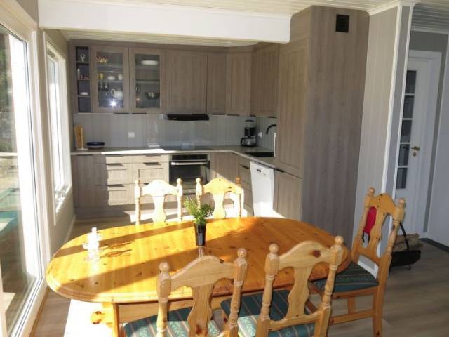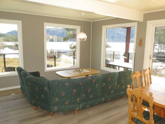 "Øydnablikk (SOW253)", casa 5 estancias 86 m2 en 2 plantas. Con mobiliario agradable: salón-comedor con chiminea nórdica, mesa de comedor y TV. Salida a la terraza. 1 dorm. con 1 cama doble (150 cm, 200 cm de longitud). 1 dorm. con 1 cama (90 cm, 200 cm de longitud). Cocina abierta (4 fogones, horno, lavavajillas, microondas, congelador, grill, cafetera eléctrica). Ducha/WC. Calefacción eléctrica. Planta superior: (escalera empinada) salón-dormitorio abuhardillado, altura de techo 80 - 200 cm con 1 sofá-cama doble y TV. 1 dorm., abuhardillado altura de techo 80 - 200 cm con 1 cama (140 cm, 200 cm de longitud). Trastero. Vista al lago. El alojamiento dispone de: lavadora, trona, cuna. Internet (Wifi, extra). A tener en cuenta: casa para no fumadores. 924531169