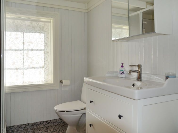 Casa de madera "Solskinn", pequeña, agradable del año 2013, rodeada de árboles y prados. A 1 km del centro de Vemestad, a 13 km del centro de Lyngdal, a 73 km del centro de Kristiansand, a 13 km del mar, a 200 m del río, en el campo. Privado: terreno en estado natural con pradera. Acceso brusco durante 100 m. Aparcamiento junto a la casa. Tienda 1 km, supermercado 13 km, estación de tren "Snartemo" 14 km, ferry "Kristiansand" 72 km, playa de arena 1 km. Posibilidades de pesca 200 m.