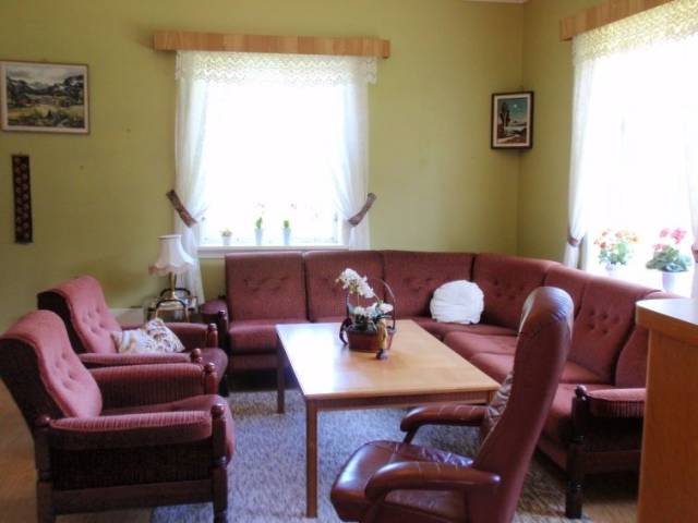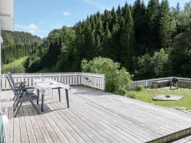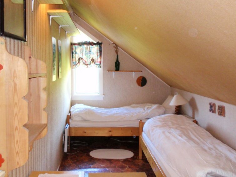 "Nystølen (FJH657)", casa 7 estancias 140 m2 en 2 plantas. Vivienda adecuada para 8 adultos + 2 niños. Con mobiliario funcional: salón con chiminea nórdica, TV satélite, equipo de música y DVD. Salón-comedor con chiminea nórdica, mesa de comedor, TV satélite, equipo de música y DVD. 1 dorm. con 1 cama doble (140 cm, 200 cm de longitud). Cocina (horno, lavavajillas, 4 Placas de inducción, tostadora, hervidor de agua eléctrico, microondas, congelador, cafetera eléctrica) con mesa de comedor. Baño, WC separado. Planta superior: (escaleras sin barandilla) salón-dormitorio con 2 x 2 literas (75 cm, 200 cm de longitud), TV satélite y DVD. 1 dorm. con 1 x 3 literas. 1 dorm. con 2 camas (75 cm, 200 cm de longitud). 1 dorm. con 1 cama (75 cm, 190 cm de longitud). Calefacción eléctrica. Terraza grande. Muebles de terraza, barbacoa (portátil), trastero. Vista al mar. El alojamiento dispone de: lavadora, plancha, cuna. Internet (Wifi, gratis). A tener en cuenta: casa para no fumadores. Detector de humo, extintores. Congelador de aprox. 500 l. La disponibilidad de las camas es flexible. Aunque haya más camas disponibles que la ocupación máxima, esta no se puede exceder. 924531169