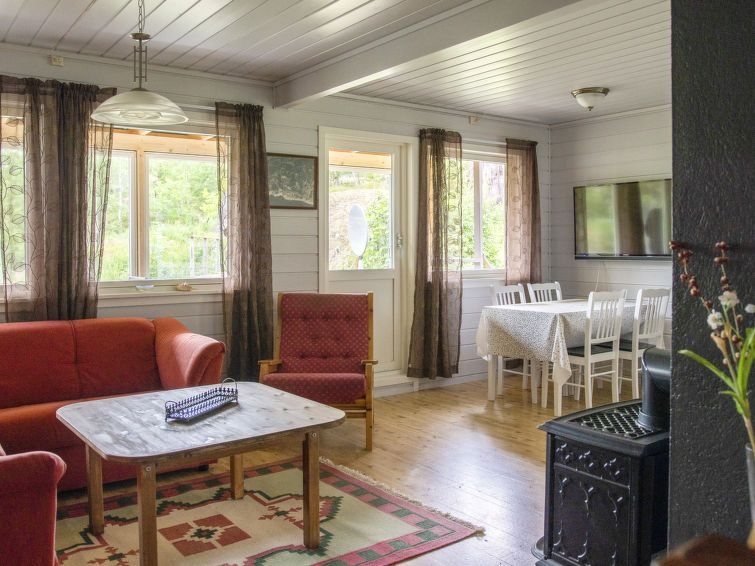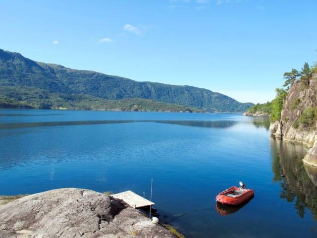 Casa de madera "Åkrafjorden", individual, reformada en 2020. A 8 km del centro de Åkra, a 63 km del centro de Leirvik, a 82 km del centro de Odda, lugar soleado en una pendiente, 50 m del fiordo. Pasarela de baño. Privado: terreno en estado natural. Terraza, muebles de jardín, barbacoa, caseta de barbacoa, mesa para la preparación de pescado. Lancha motora (por encargo previo). Acceso empinado durante 1 km hasta la casa (camino de tierra). Aparcamiento en el mismo terreno. Tienda 8 km, supermercado 36 km, ferry "Bergen" 155 km. Posibilidades de pesca 100 m. Atracciones en los alrededores: Museum Rosendal 36 km, Mosevatnet 40 km, Waterfall Langefoss 52 km. Zona de senderismo Folgefonna Nasjonalpark. "Åkrafjorden (FJH340)", casa 4 estancias 75 m2 en 2 plantas. Con mobiliario agradable y con mucha madera: salón-comedor con mesa de comedor, TV satélite y estufa de lena. 1 dorm. con 1 cama doble. Cocina abierta (4 fogones, horno, lavavajillas, tostadora, hervidor de agua eléctrico, microondas, congelador, cafetera eléctrica). Ducha/WC. Calefacción eléctrica. Planta superior: 2 dorm., abuhardillados, cada habitación con 2 camas. Invernadero. Vista parcial al mar. El alojamiento dispone de: lavadora, cuna. Internet (Wifi, extra). Plaza de aparcamiento junto a la casa. A tener en cuenta: detector de humo, extintores. Congelador de aprox. 80 l. No están permitidos botes privados. 924531169
