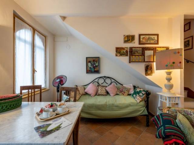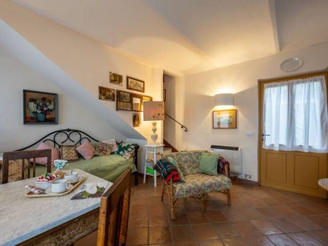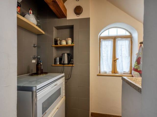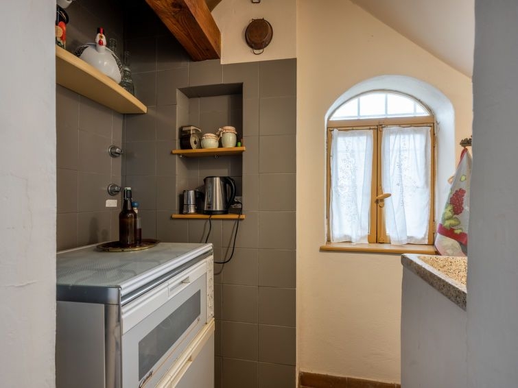 "Casetta", casa 2 estancias 45 m2 en 2 plantas. Con mobiliario antiguo y de buen gusto: salón-dormitorio con 1 sofá-cama (80 cm, 180 cm de longitud), mesa de comedor, TV satélite y equipo de música. Salida a la terraza. Pequeña cocina abierta (horno, lavavajillas, 4 fuegos, tostadora, hervidor de agua eléctrico, cafetera eléctrica). Planta superior: 1 dorm., abierto con 1 cama de matrimonio (160 cm), ducha/WC. Calefacción. Calefacción disponible desde el 01.10. al 15.04. Suelo de piedra natural. Terraza, terraza-jardín. Muebles de terraza, barbacoa (portátil). El alojamiento dispone de: trona, cuna. Permitido máximo 1 mascota / perro. CIR: 00509600002