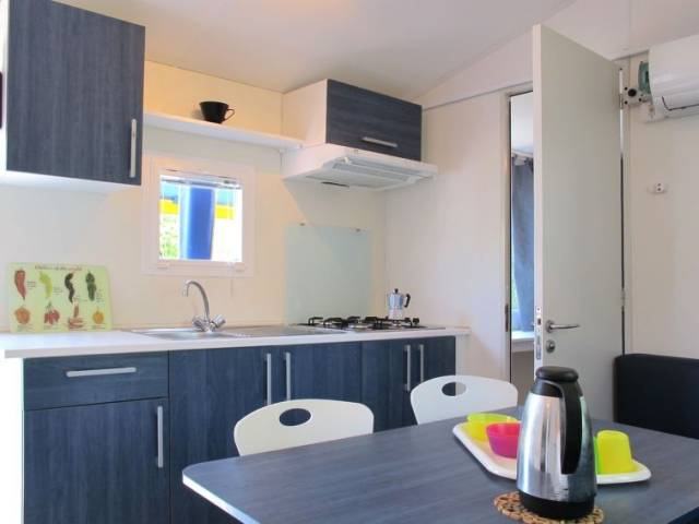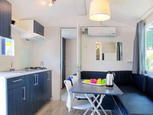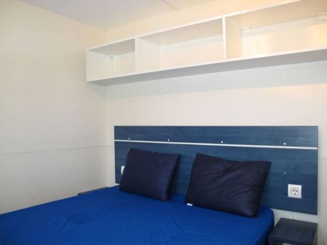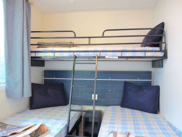 "Happy Easy", 3 estancias mobile home 25 m2. Vivienda adecuada para 4 adultos + 1 niño. Con mobiliario funcional: salón-dormitorio con mesa de comedor, calefacción eléctrica y aire acondicionado. 1 dorm. con 1 cama de matrimonio (140 cm, 190 cm de longitud). 1 dorm. con 2 camas (70 cm, 190 cm de longitud), 1 x 1 literas (65 cm, 179 cm de longitud). Cocina abierta (4 fogones). Ducha/WC. Aire acondicionado (extra). Terraza parcialmente cubierta. Muebles de terraza, barbacoa (portátil), tumbonas (2). El alojamiento dispone de: mosquitera. Plaza de aparcamiento (1 coche). A tener en cuenta: apartamento para no fumadores. 017171-CAM-0004