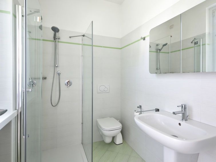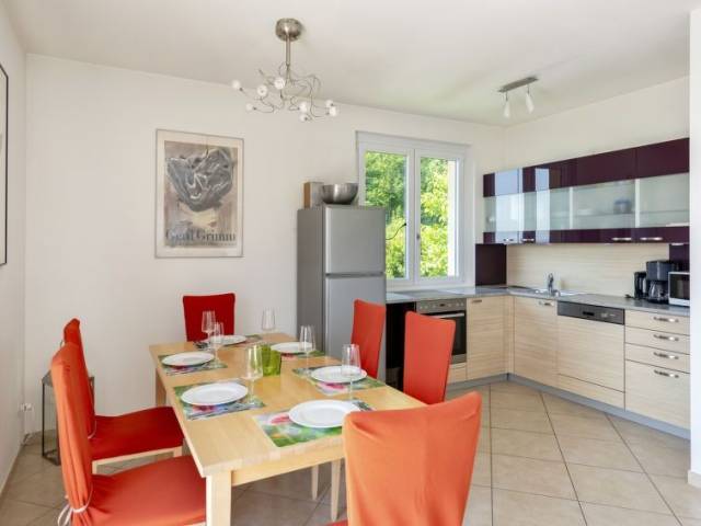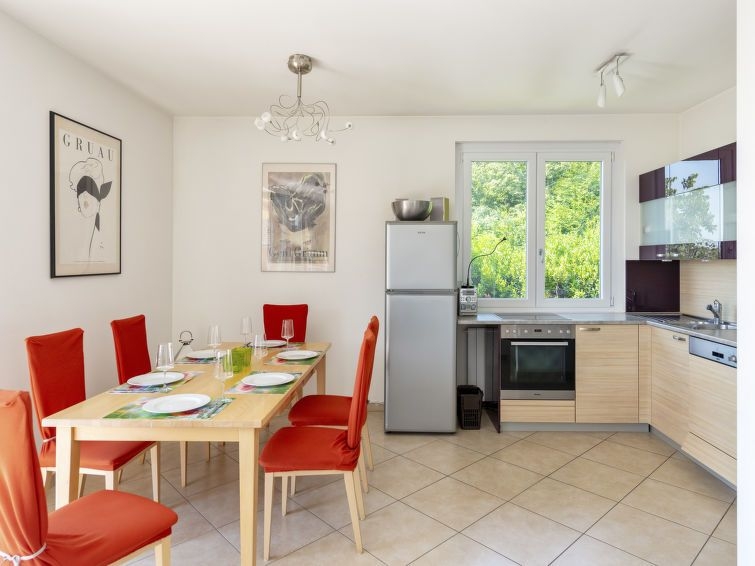 Casa 4 estancias 100 m2 en 2 plantas. Con mobiliario bonito y moderno: en planta inferior: entrada. 2 dorm. dobles. 1 dorm. con 2 camas. Ducha/WC. Planta superior: salón con mesa de comedor y TV satélite. Salida al balcón. Cocina abierta (horno, lavavajillas, 4 placas de vitrocerámica, tostadora, hervidor de agua eléctrico, congelador, cafetera eléctrica). Ducha/WC. Calefacción de gas. Balcón 45 m2, terraza cubierta. Muebles de terraza, muebles de balcón, tumbonas (6). Vista lejana espléndida al lago. El alojamiento dispone de: Internet (Wifi, gratis). Plaza de aparcamiento (2 Coches) junto a la casa. A tener en cuenta: apartamento para no fumadores. No hay costos locales adicionales, excepto la tasa local de turismo. 017180-CNI-00051