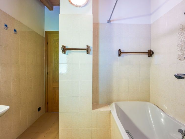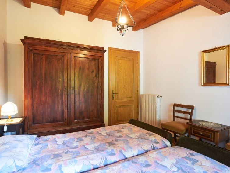 Apartamento de 3 estancias 85 m2, en planta superior, orientación sureste. Con mobiliario confortable: salón-comedor con mesa de comedor y TV satélite. Salida al balcón. 1 dorm. doble. 1 dorm. con 2 camas. Salida al balcón. Cocina abierta (horno, 4 fuegos, tostadora, microondas, congelador, cafetera eléctrica). Baño/bidet/WC. Calefacción de gas (extra). Balcón 7 m2, orientación este balcón 2 m2, orientación sur terraza grande. Muebles de terraza, barbacoa (portátil), tumbonas (2). Vista panorámica espléndida al lago y a las montañas. El alojamiento dispone de: lavadora, plancha, trona, cuna hasta 2 años, secador de pelo. Internet (Wifi, gratis). A tener en cuenta: permitido máximo 1 mascota / perro. Entrada privada. CIR:013160-CNI-00010